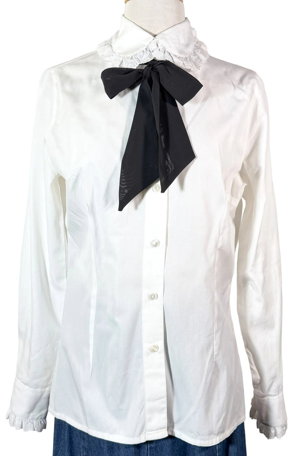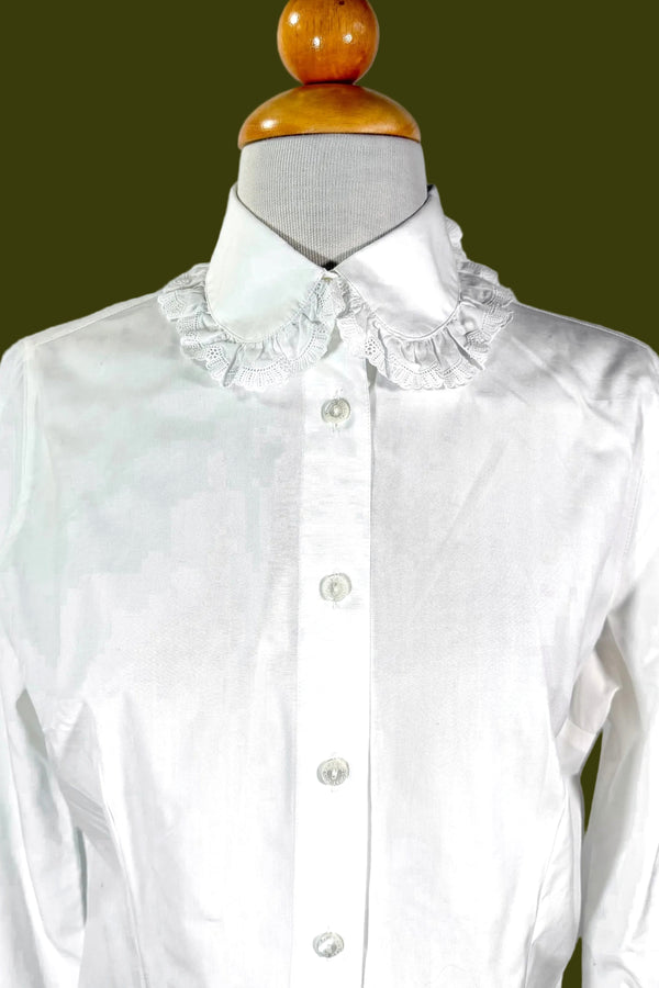 VTG Charles Cotonay White Cotton Blouse Peter Pan Collar 36