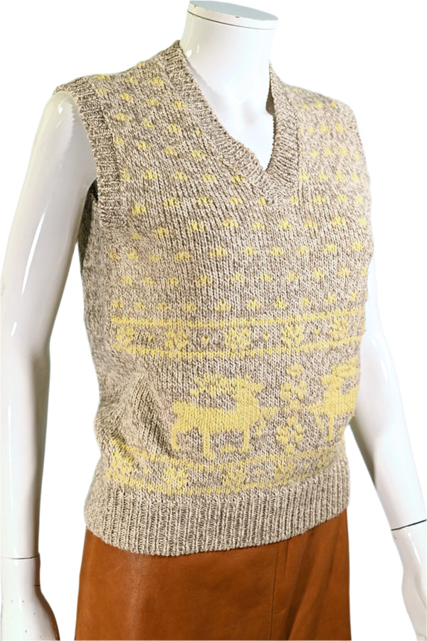 Vintage Knit Deer Snowflake Pullover Vest M