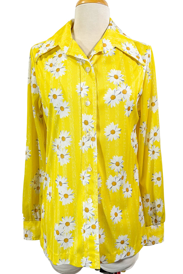 Vintage 70s Disco Shirt/Blouse, Birds & Flowers Hippie Shirt