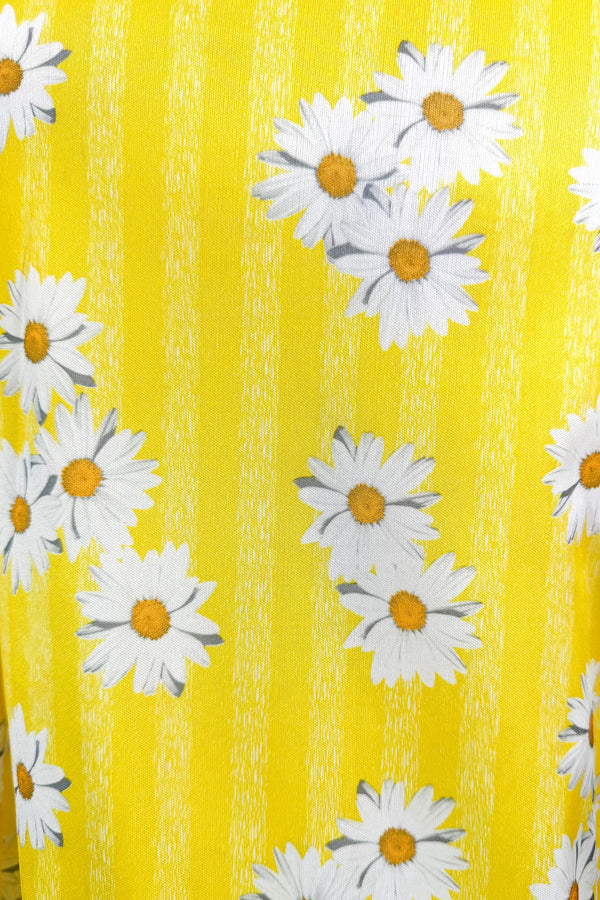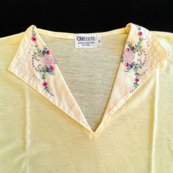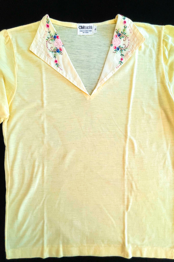 Vintage 70s Yellow T-Shirt Embroidered Collar, Deadstock Unworn L