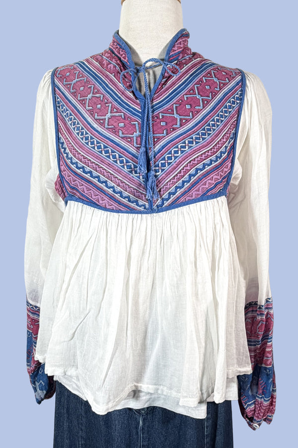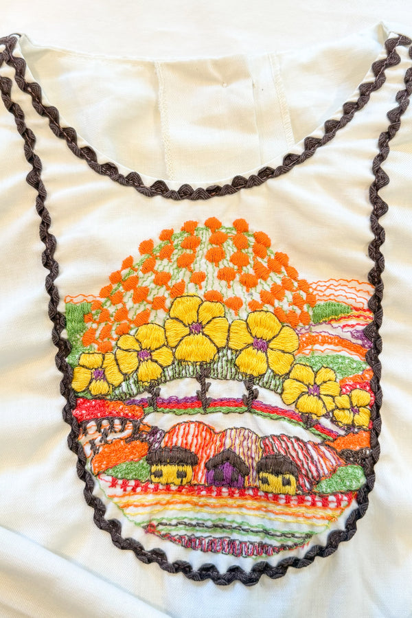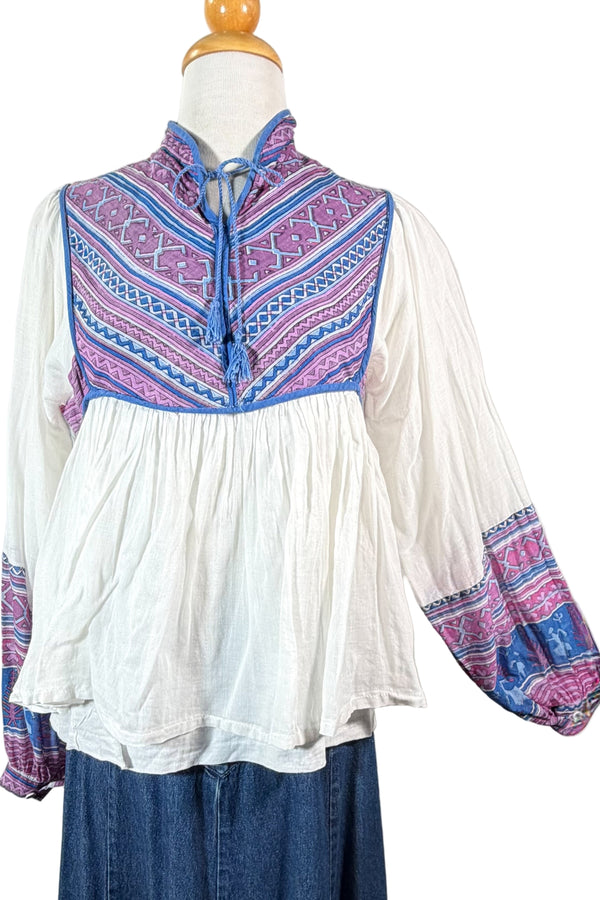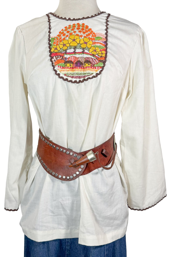 Vintage 60s/70s Hand Embroidered Hippie Blouse w/Flaws