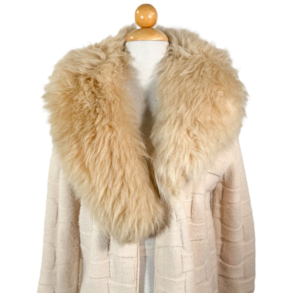 Vintage 70s Cardigan w/Genuine Sheepskin Collar, Acrylic Knit