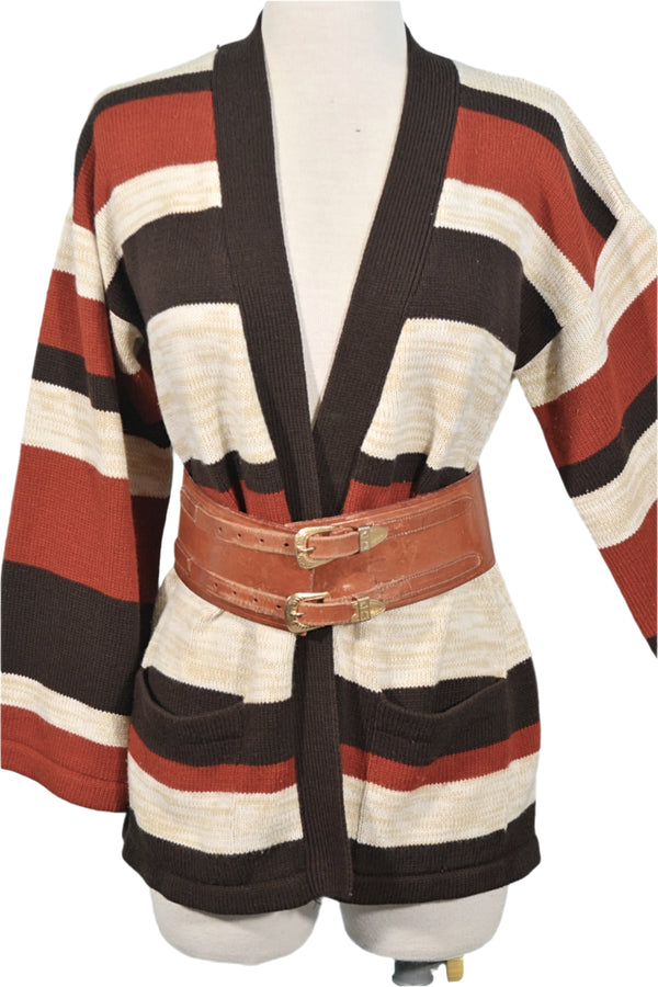 Vintage 60s/70s Striped Cardigan Sweater L