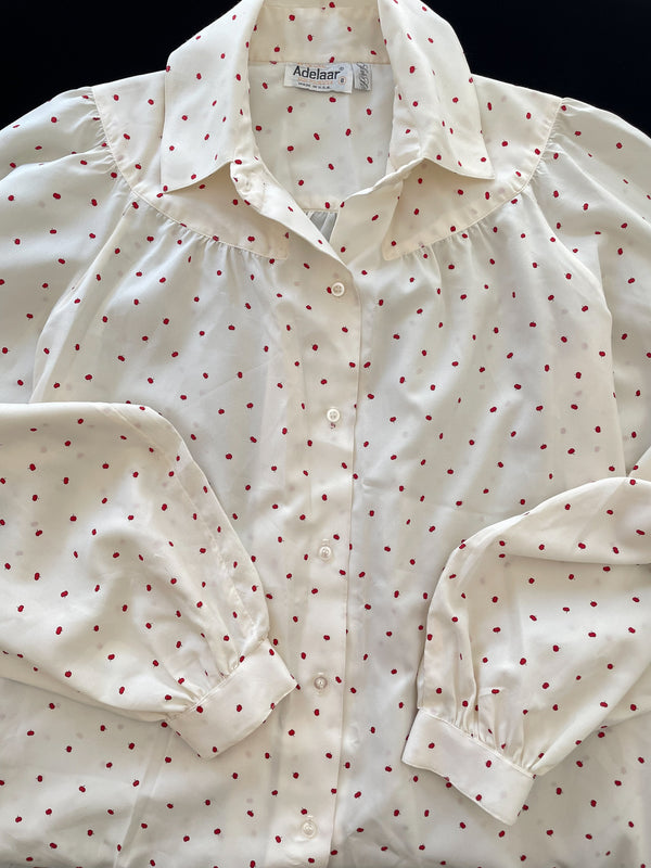 Vintage 70s Blouse Novelty Print Tiny Fruit Pattern, Saks Fifth Ave M