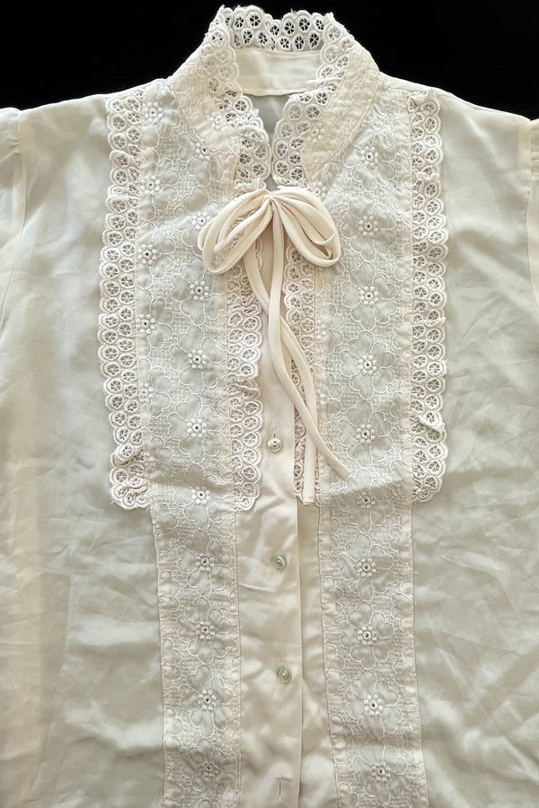70s Cream Lace Blouse, Ties at Neckline