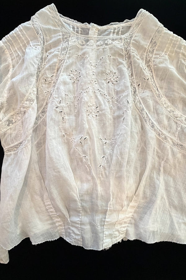 Antique Edwardian/Victorian White Cotton & Lace Blouse M