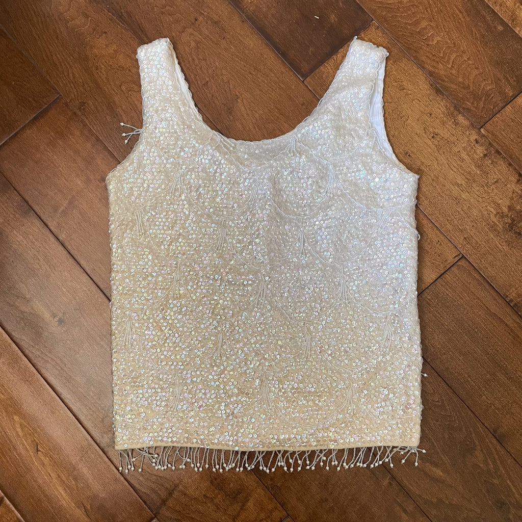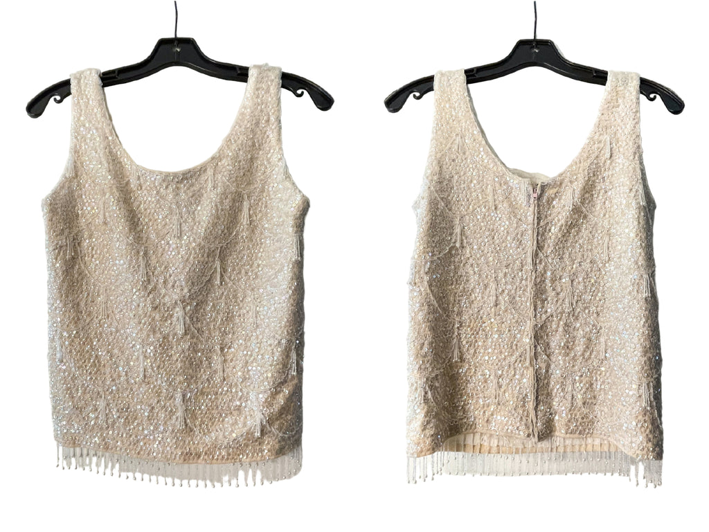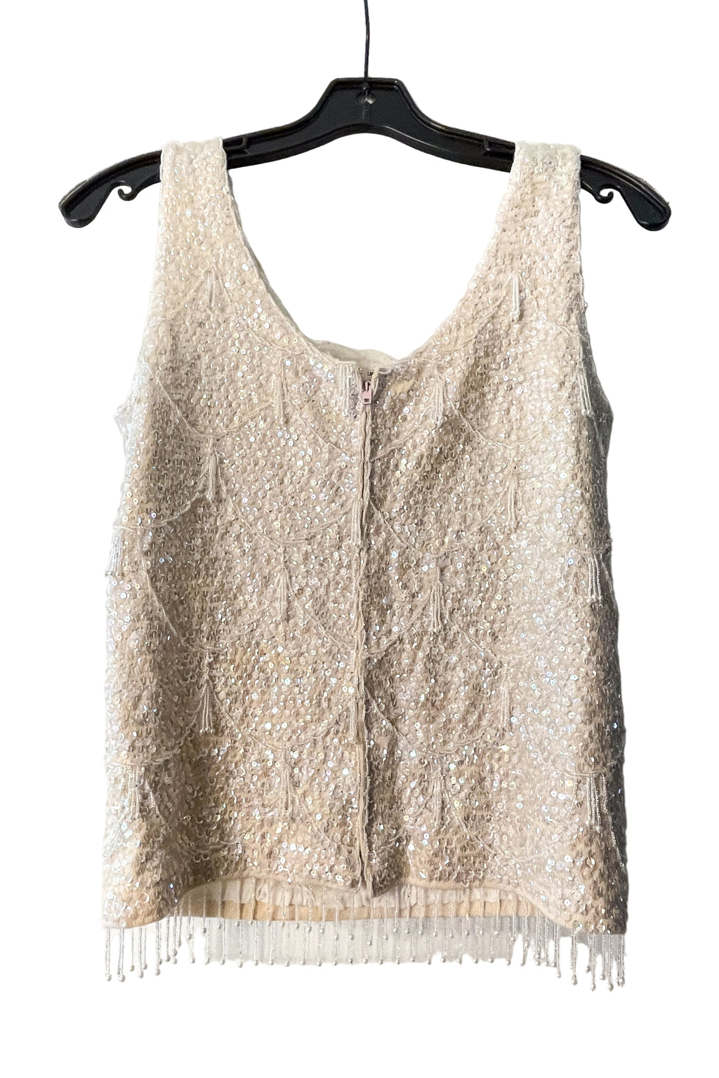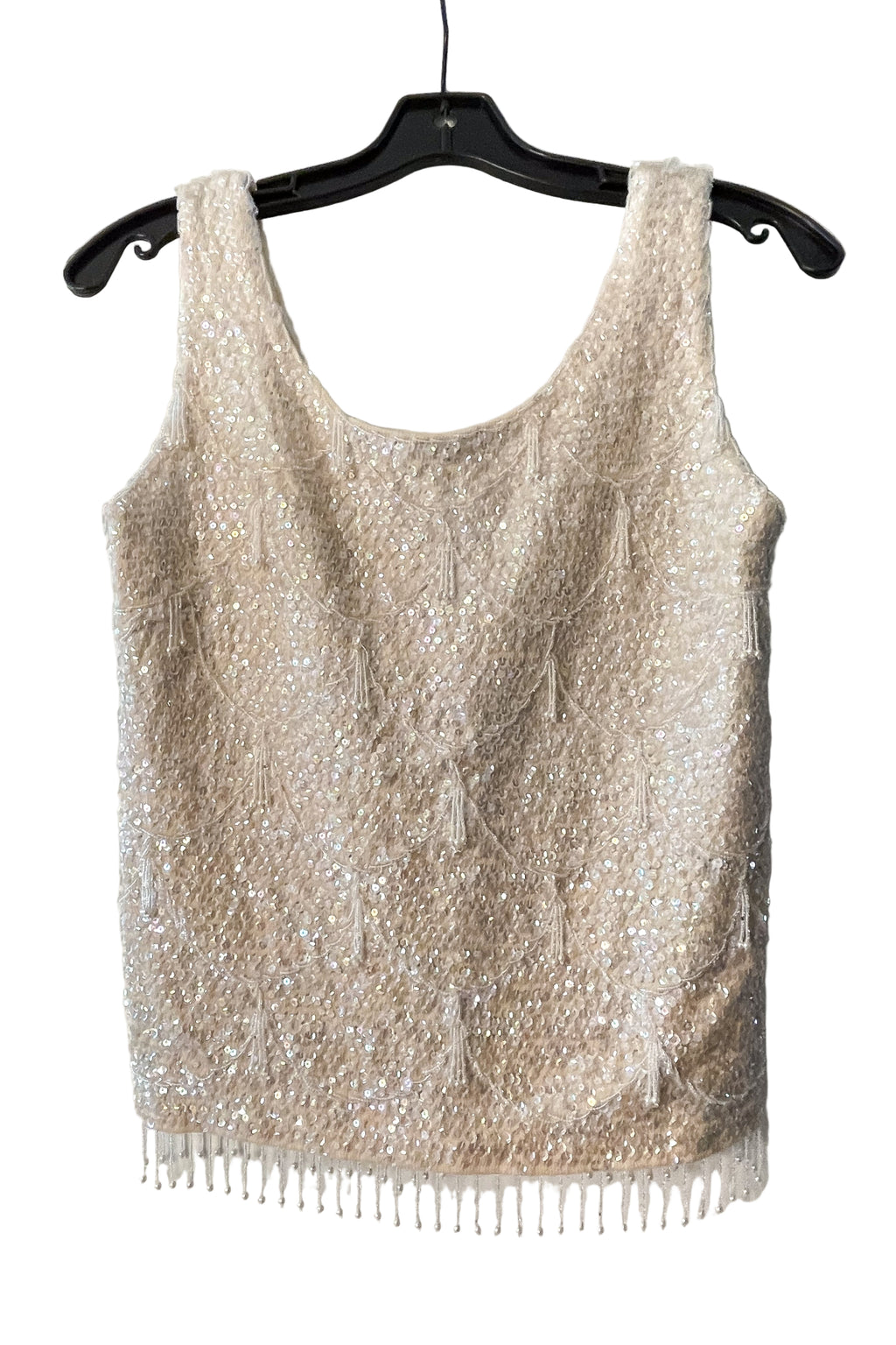 Vintage 50s/60s Cream Sequin/Beaded Sparkle Top SZ 36