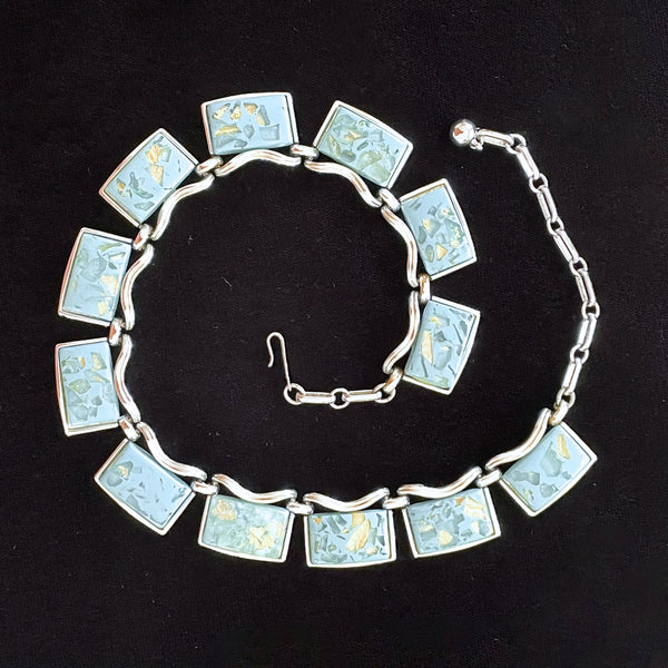 Vintage 50s Coro Blue Confetti Lucite Necklace