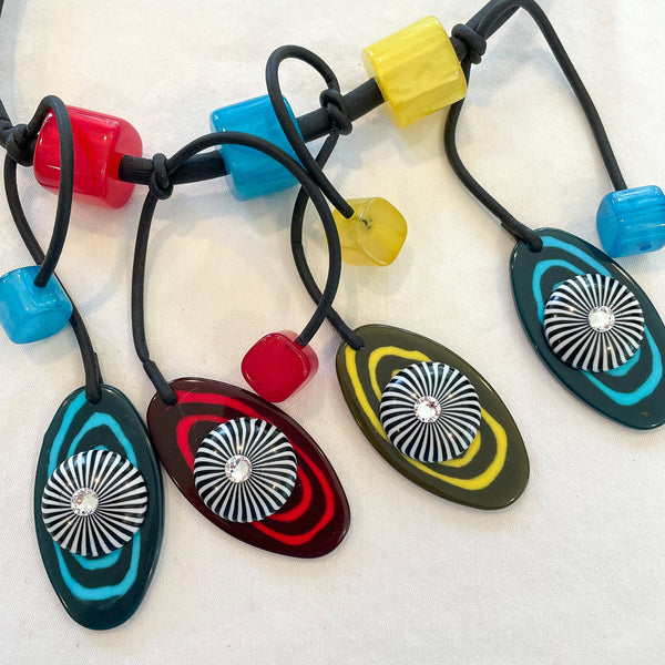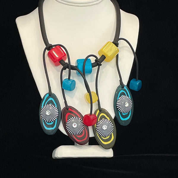 SOLD Jeff Lieb Post Modern Playful Color Block Necklace, Modernist Rubber Swarovski Crystal Necklace