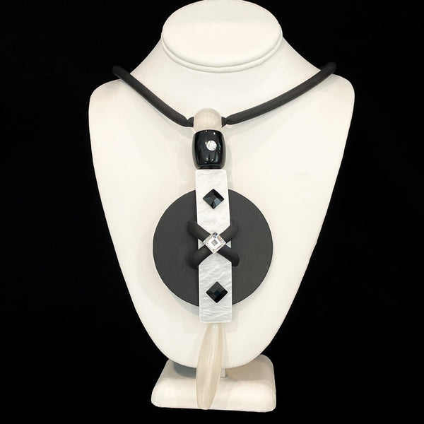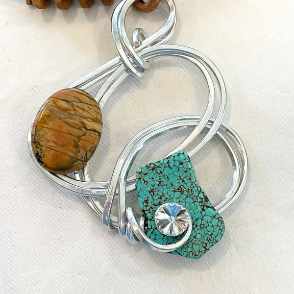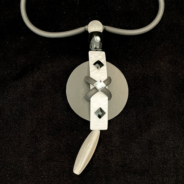 SOLD Jeff Lieb Modernist OOAK Handmade Pendant Necklace, Swarovski Crystals & Natural Stones