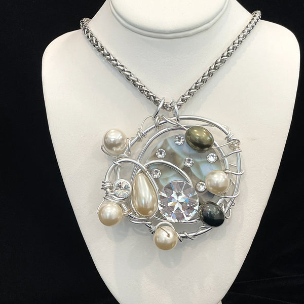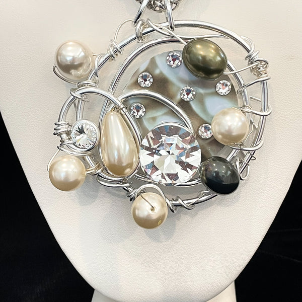 Stunning Jeff Lieb Swarovski Crystal Faux Pearl Statement Pendant Necklace