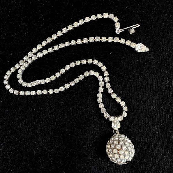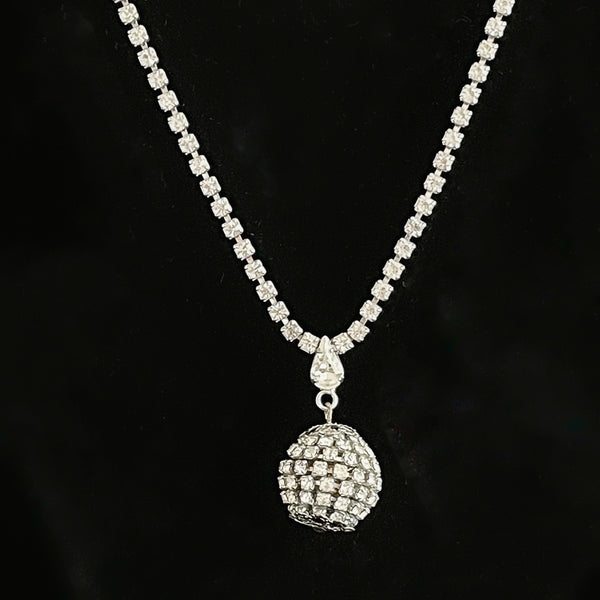 Vintage Rhinestone Necklace, GO GO Style Disco Ball Necklace 18"L