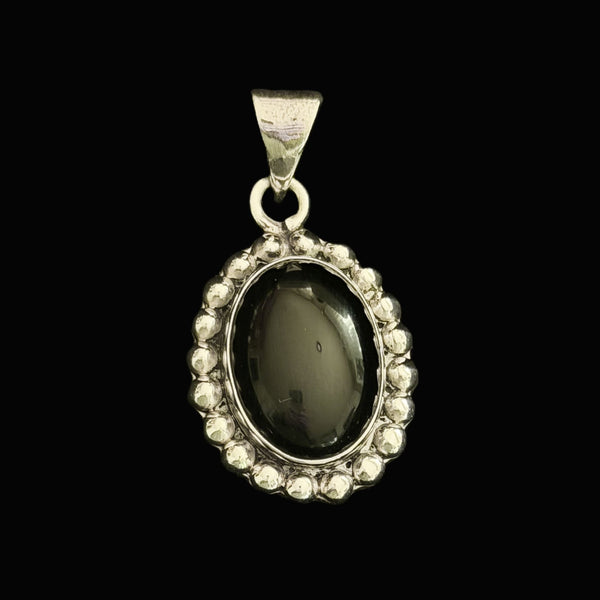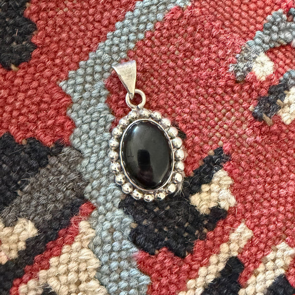 Sterling Silver Onyx Pendant, 925 Mexico, 1 1/2" H