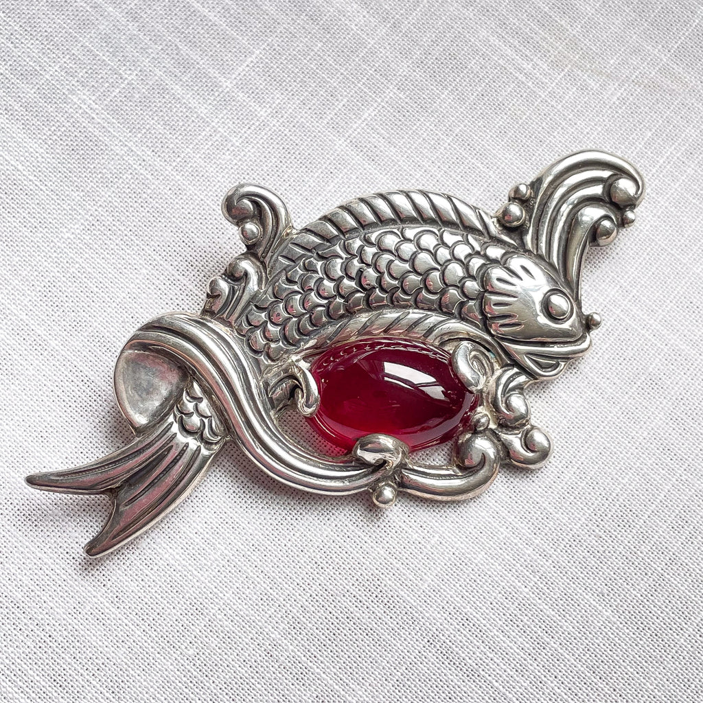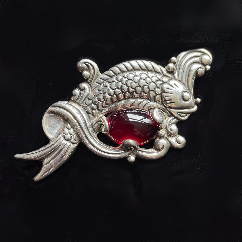 Gorgeous, rare Los Castillo fish in the waves brooch.