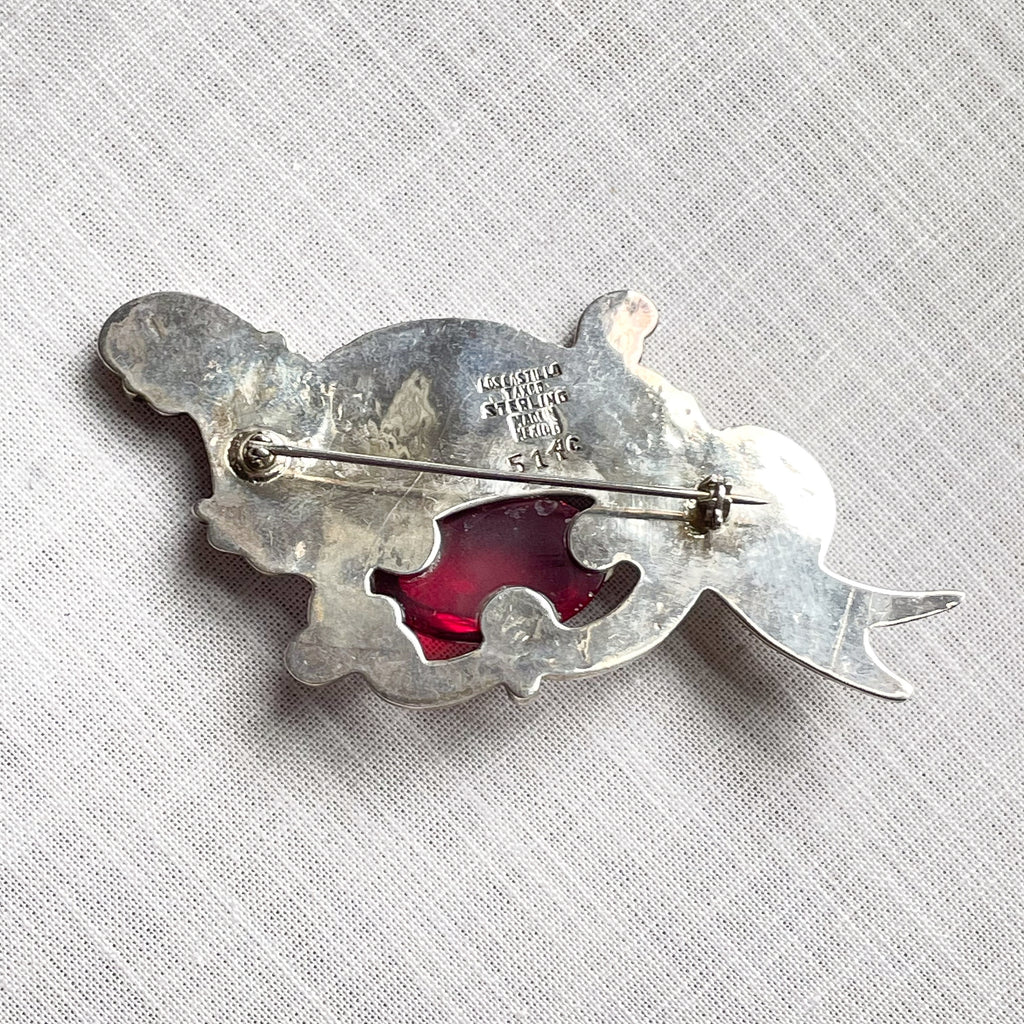 Rare Vintage Los Castillo Brooch Fish in Waves Brooch, Taxco Sterling Brooch #514C