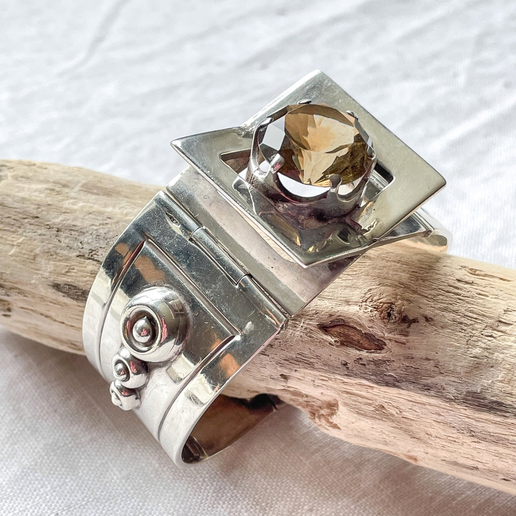 Amazing Modernist statement bracelet from Talleres Los Ballesteros.