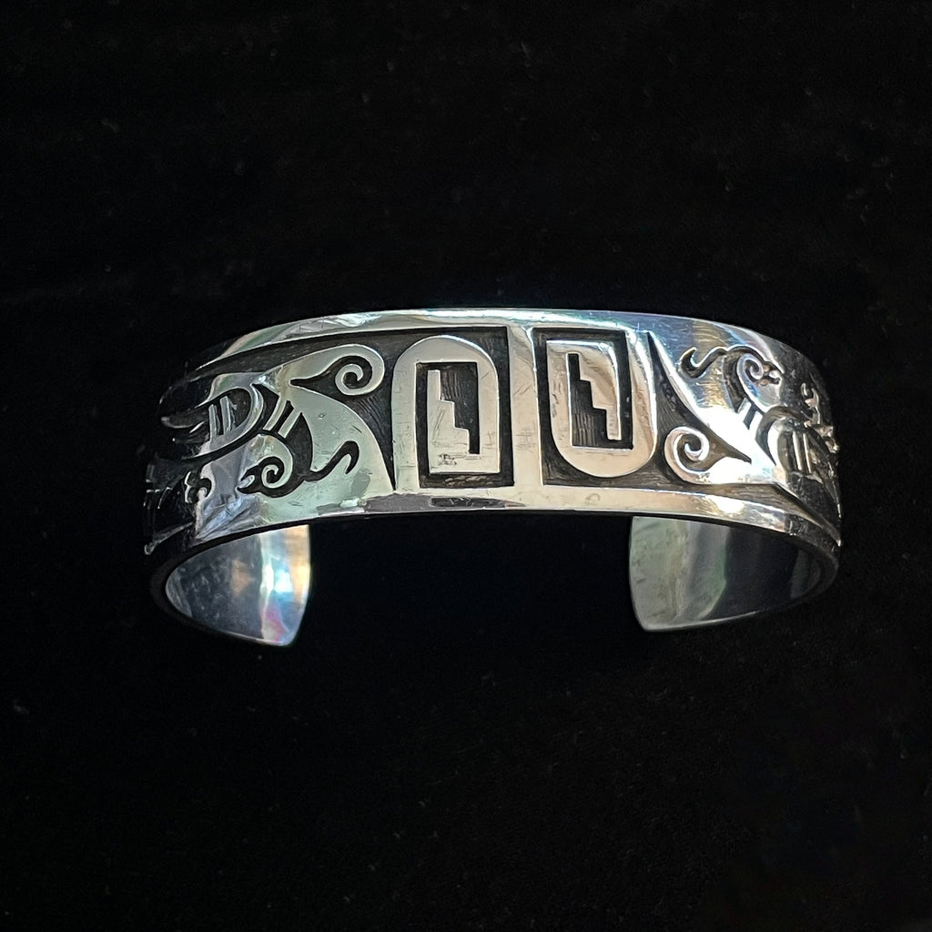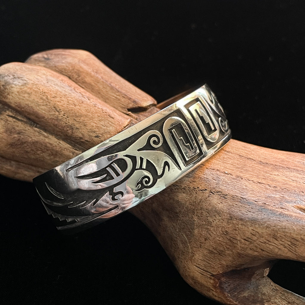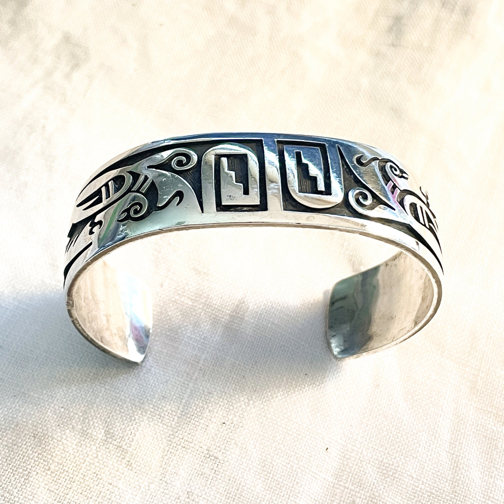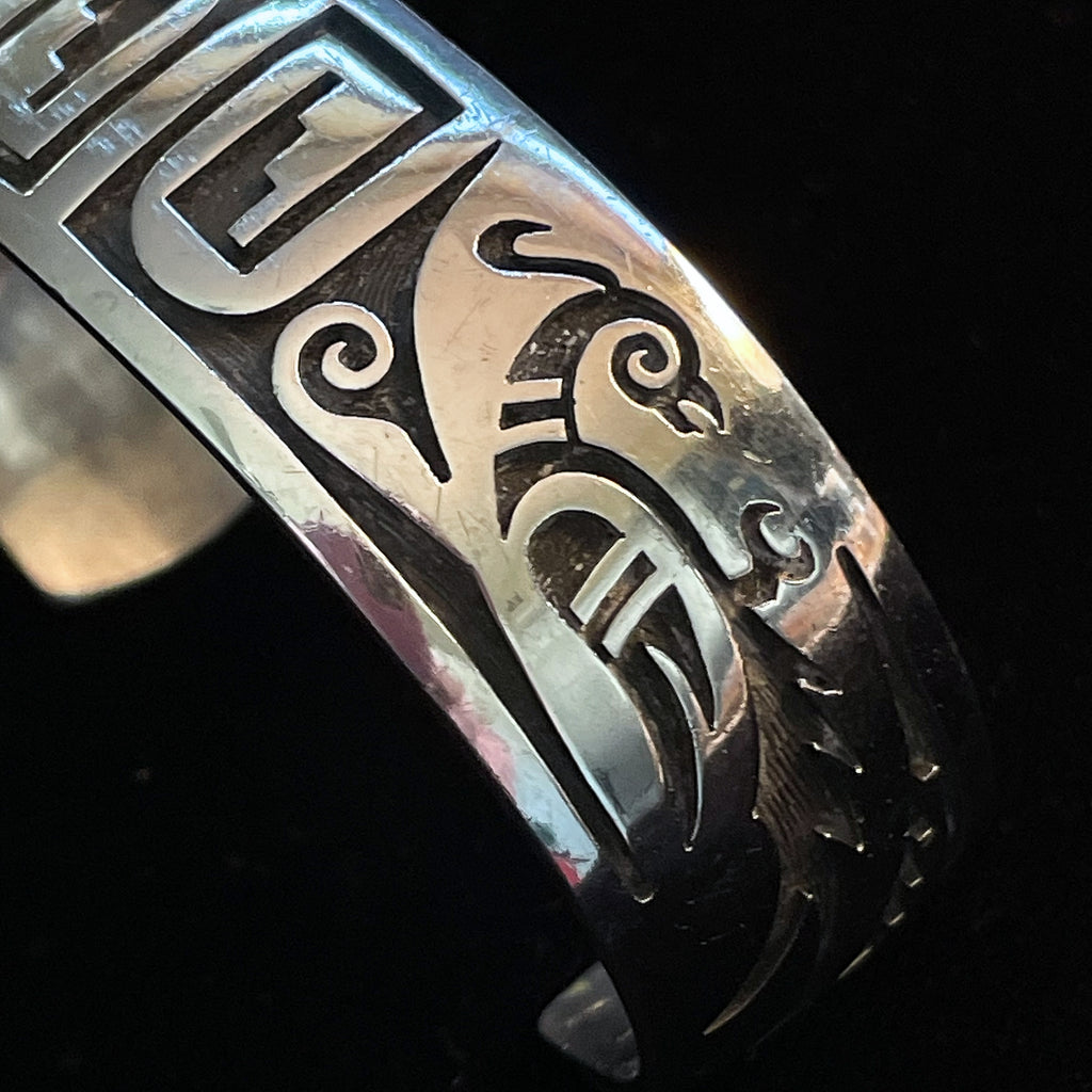 Vintage Hopi beautiful sterling silver overlay cuff bracelet.