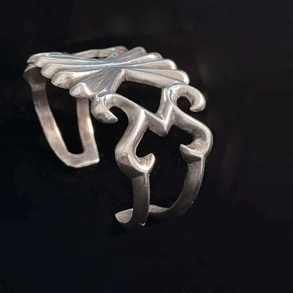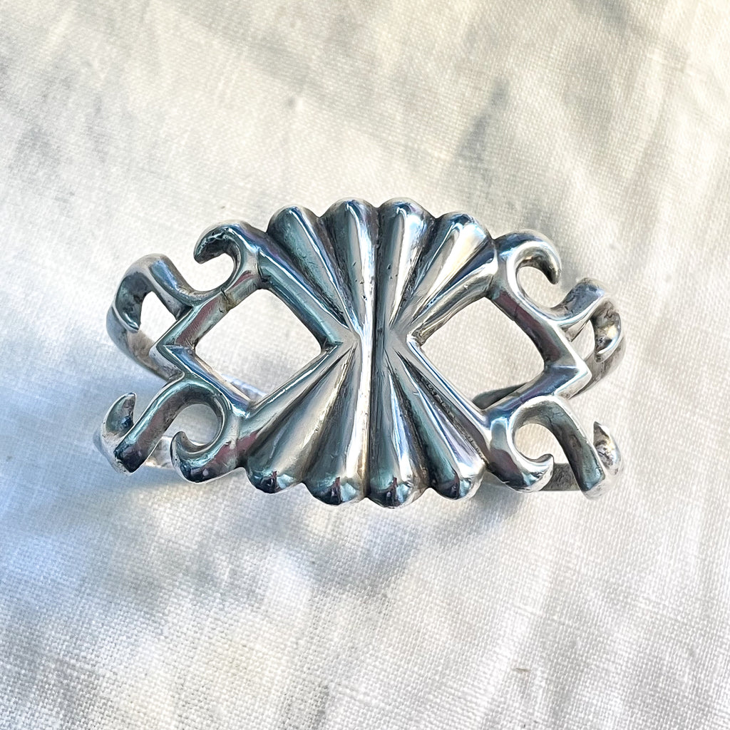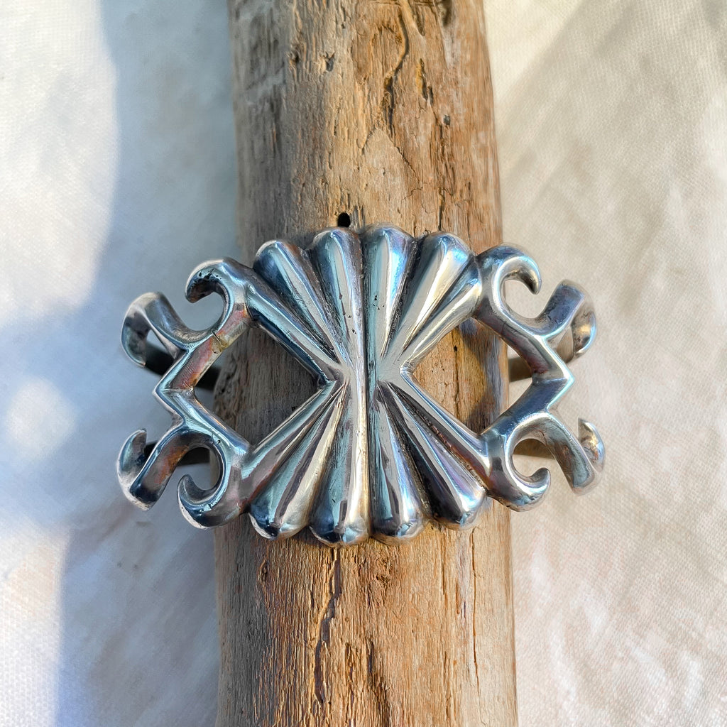 Lovely old pawn Navajo sandcast silver cuff bracelet.