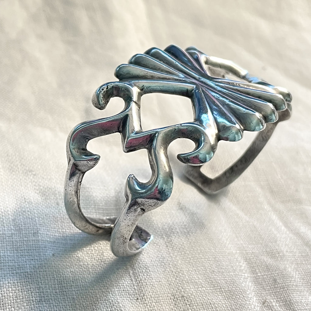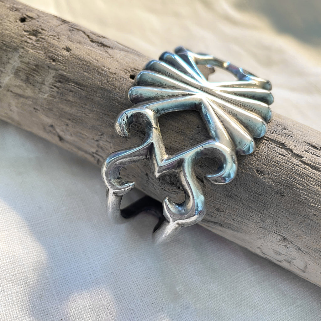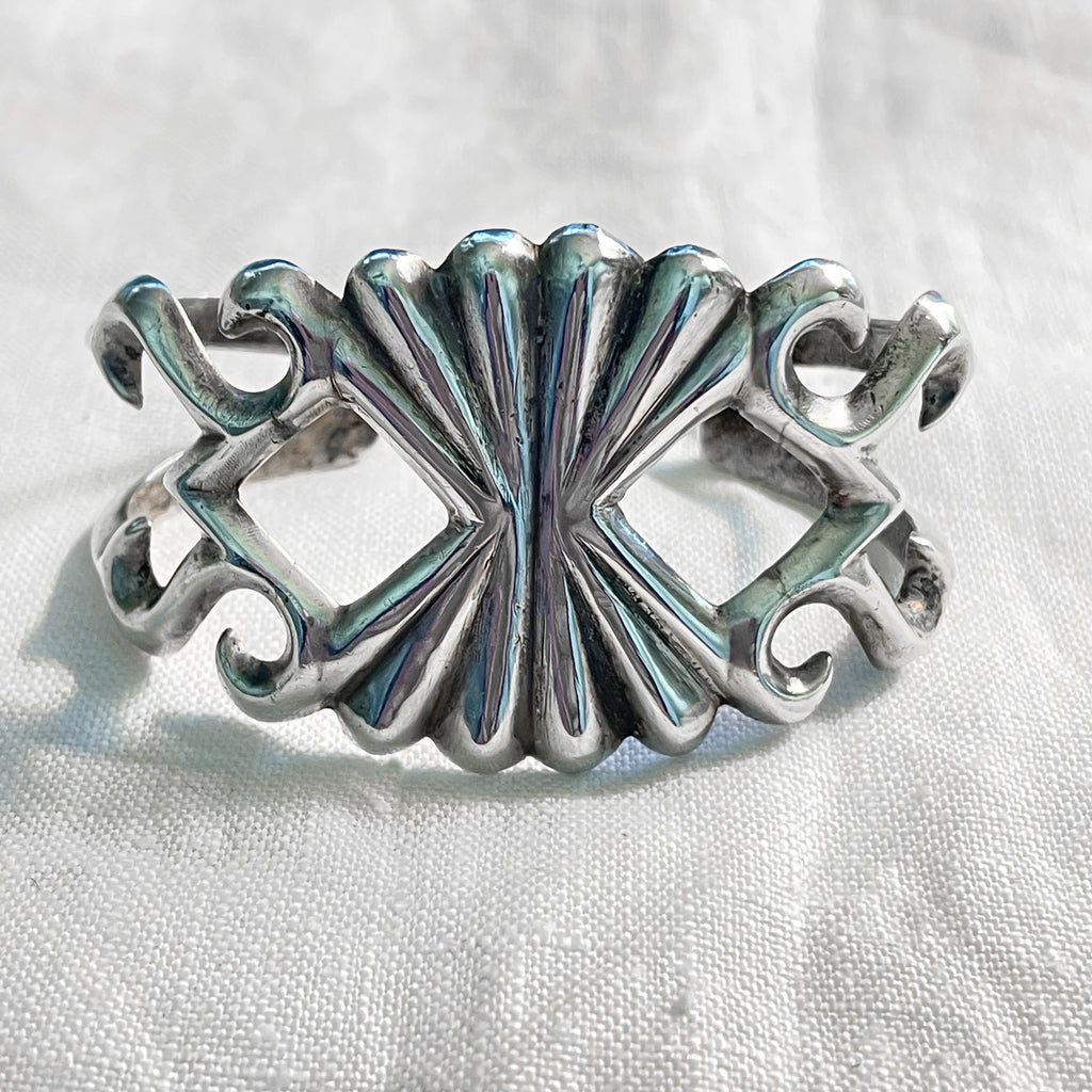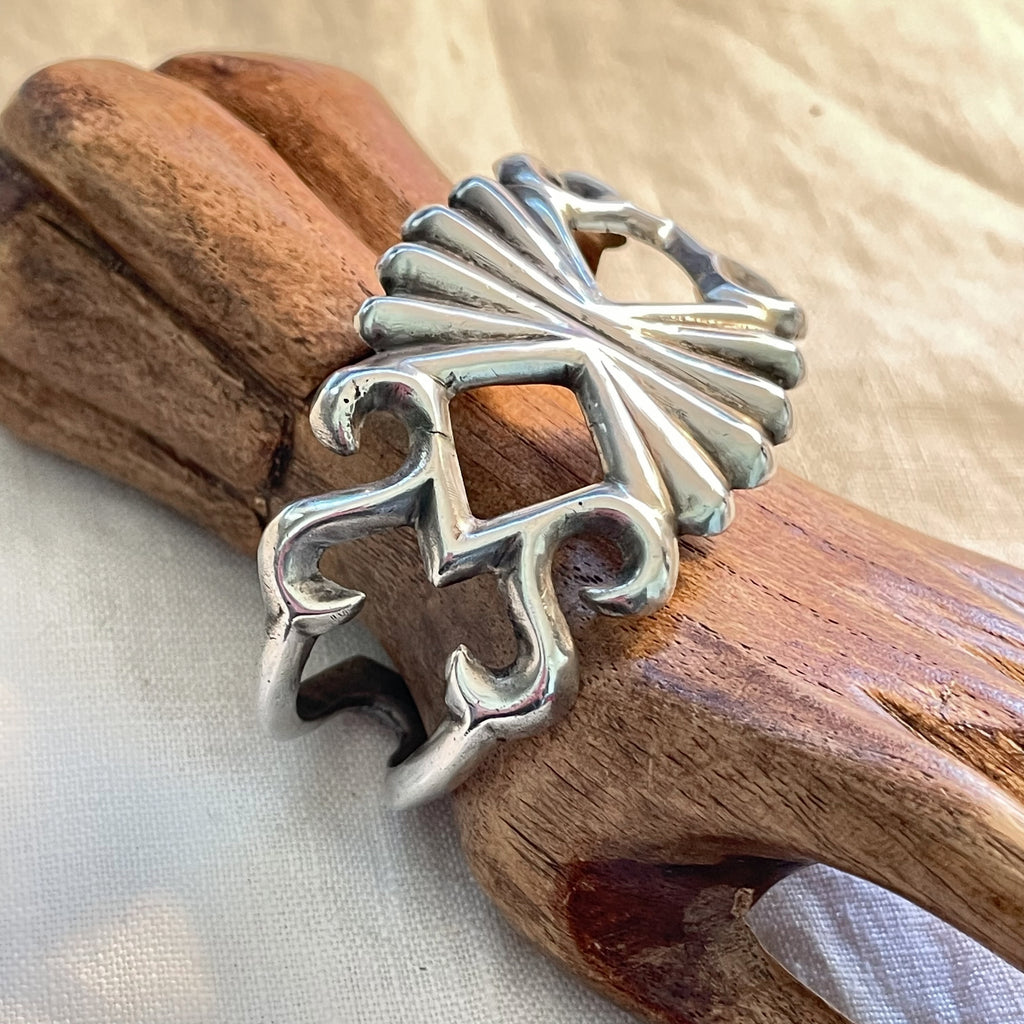 Lovely old pawn Navajo sandcast silver cuff bracelet.