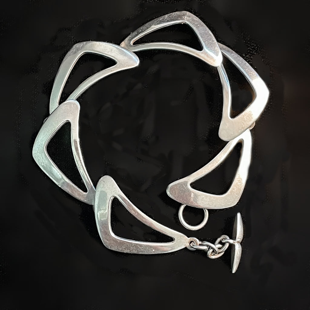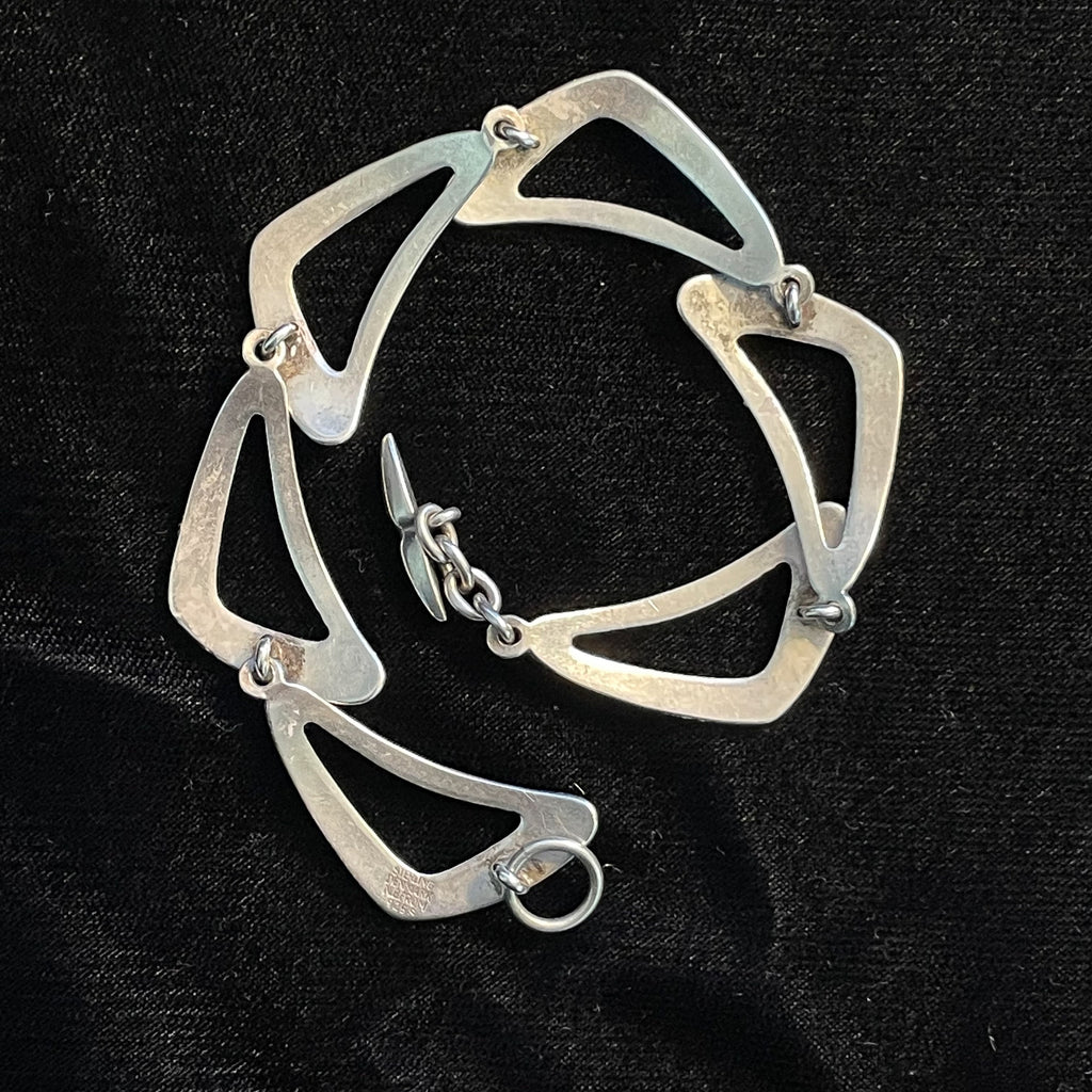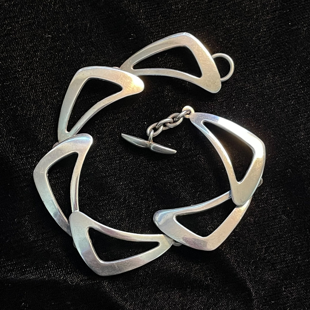 Denmark jewelry designer with styles ranging from Arts & Crafts to Mid-Century modernist. Opened his first shop in 1931, where he worked with sterling silver and stones. His earlier pieces were greatly influenced by nature. His pieces are highly collectible.