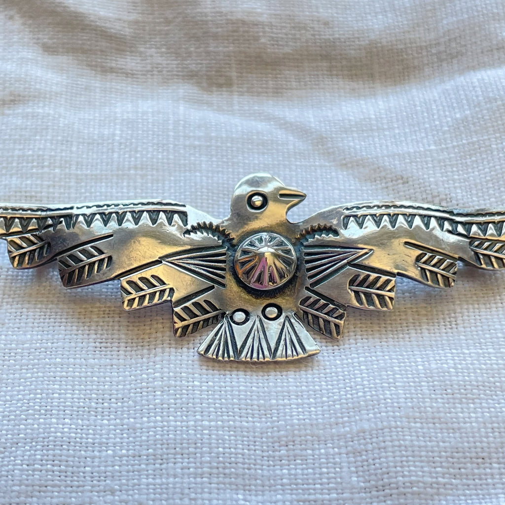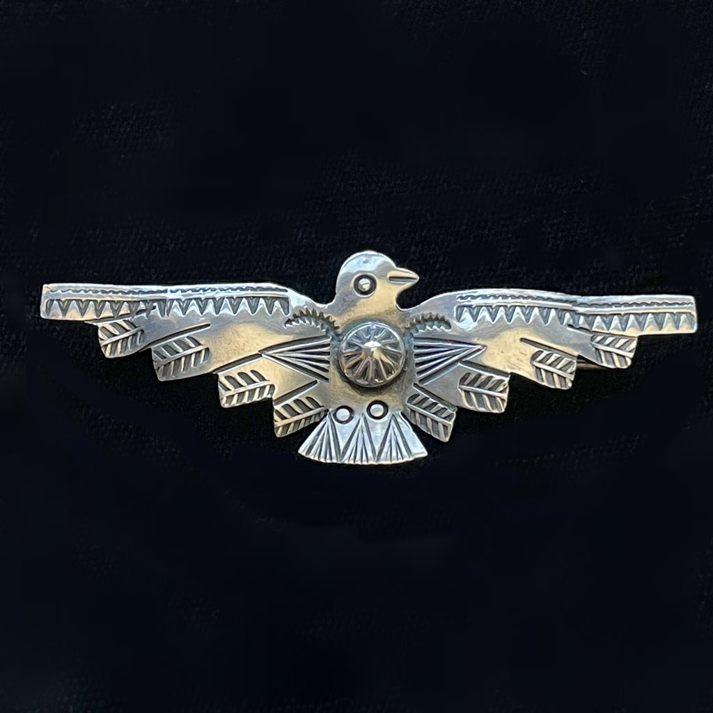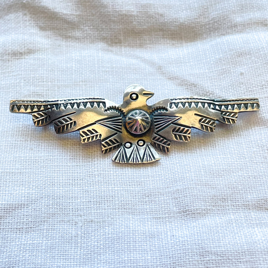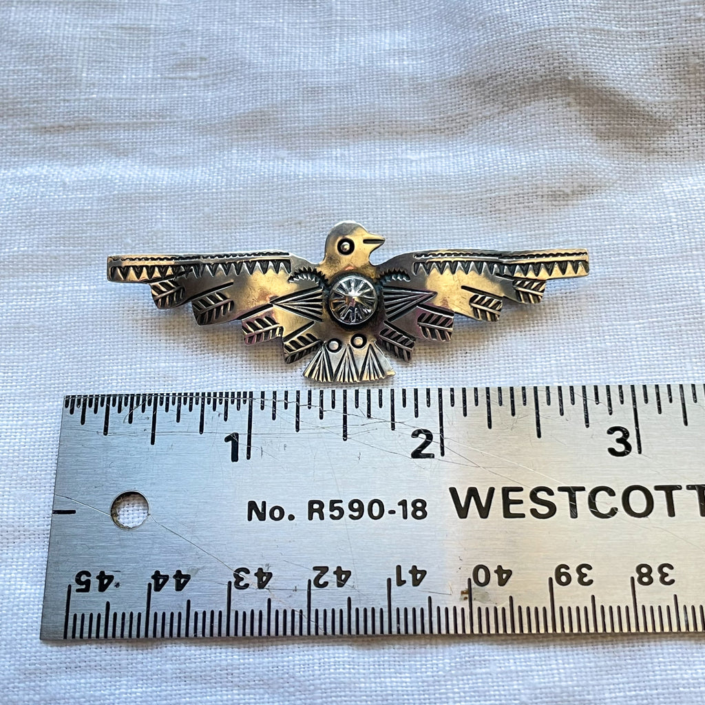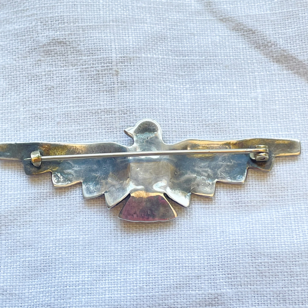 Sterling Silver Southwestern Native American thunderbird brooch.