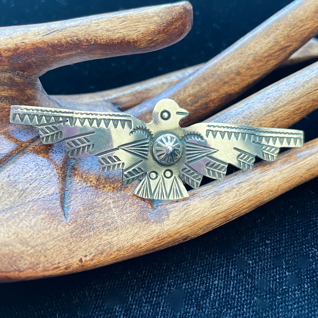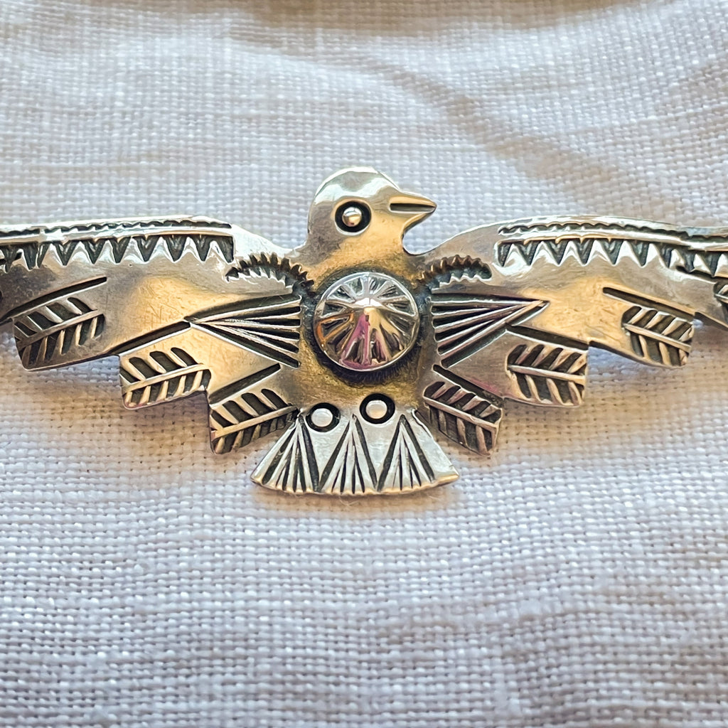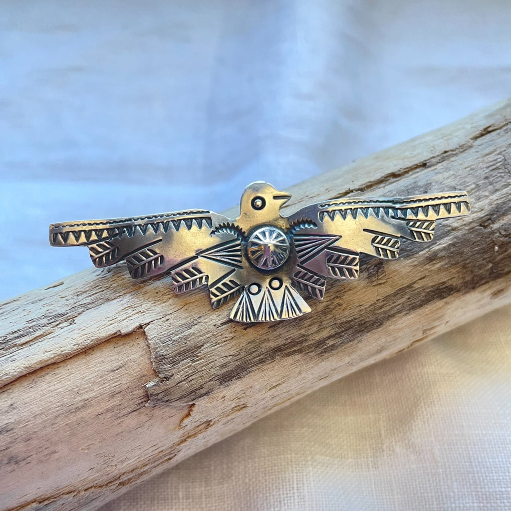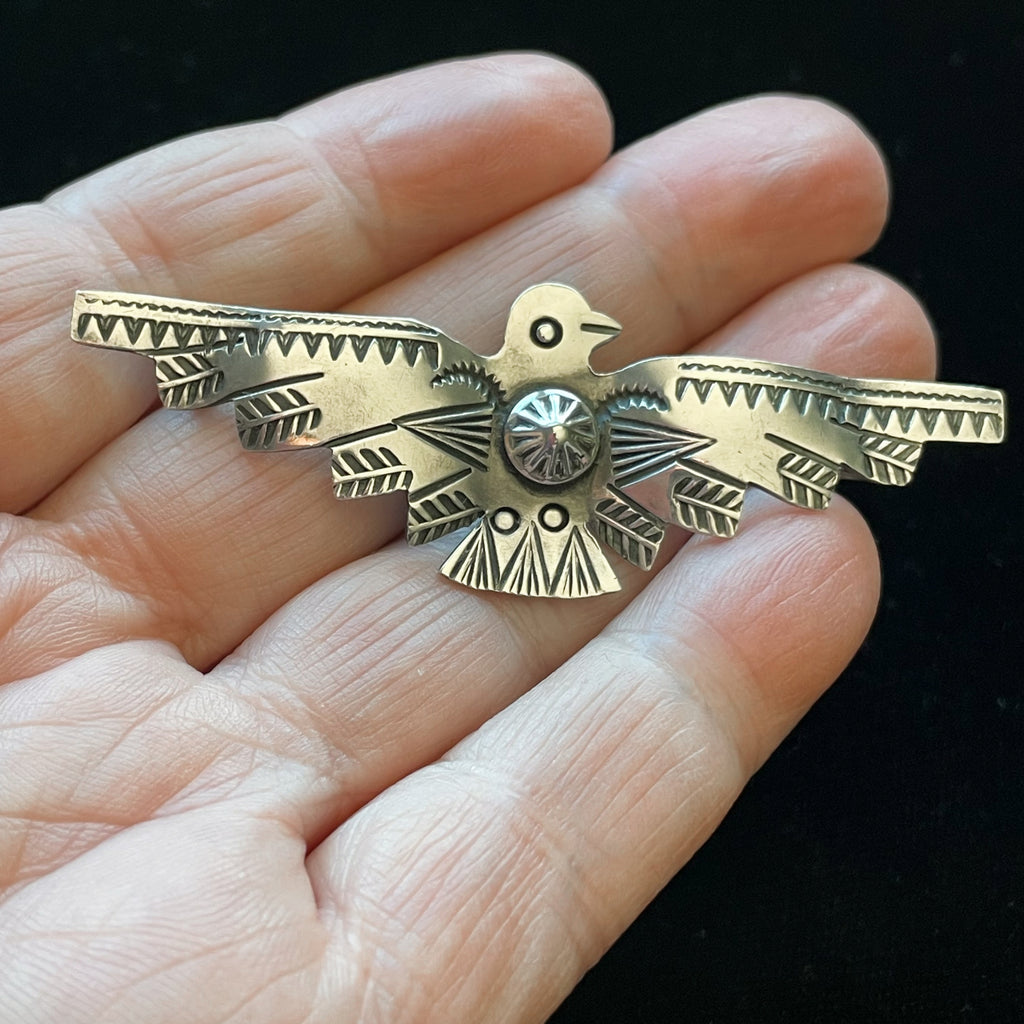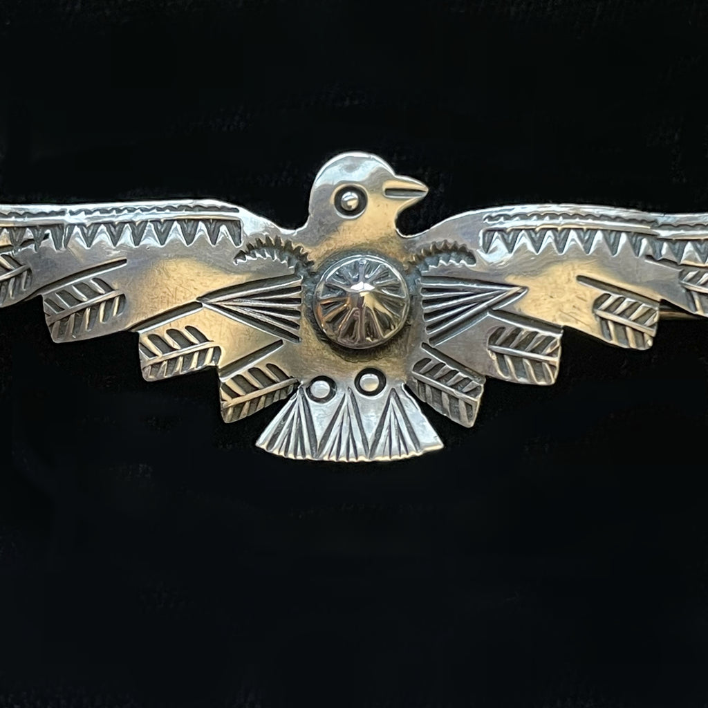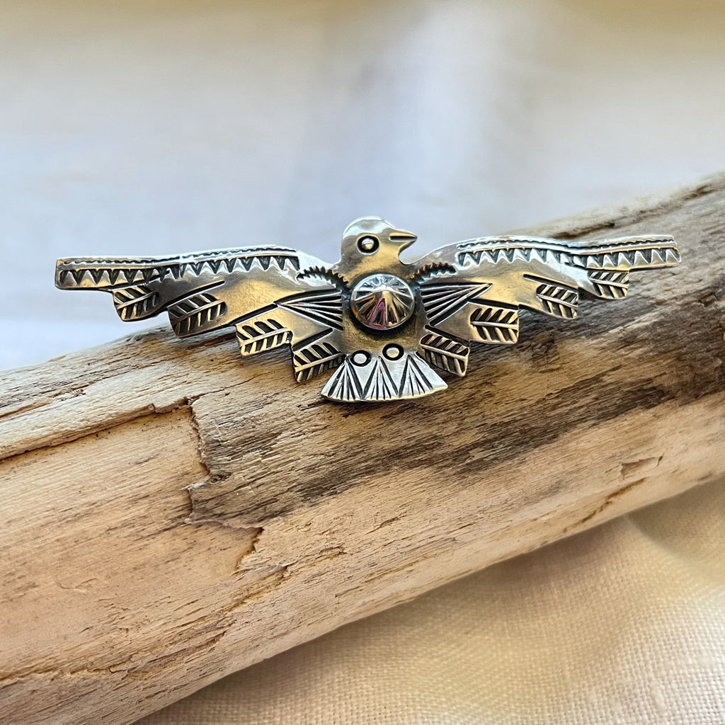 Sterling Silver Southwestern Native American thunderbird brooch.