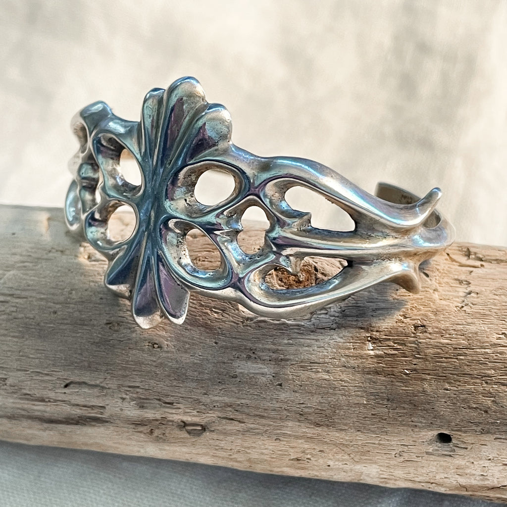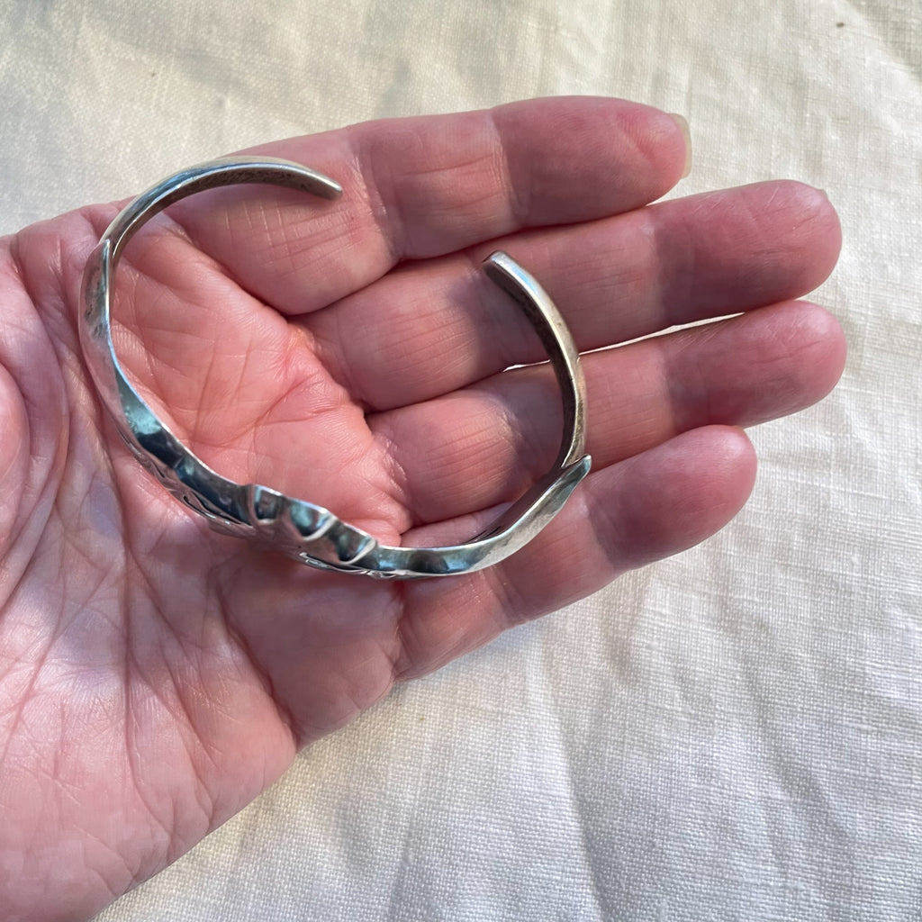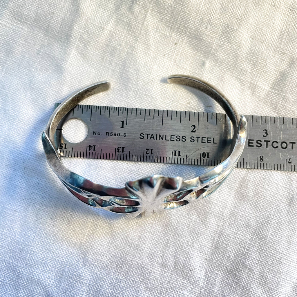 Vintage Native American Navajo Sand Cast Sterling Bracelet, Fits Small Wrist