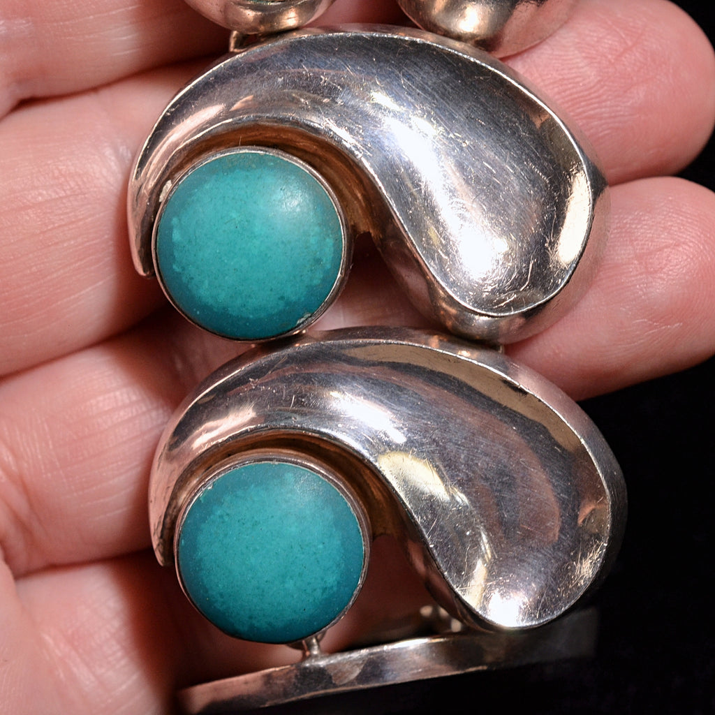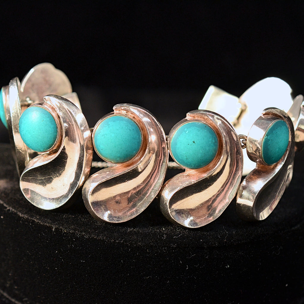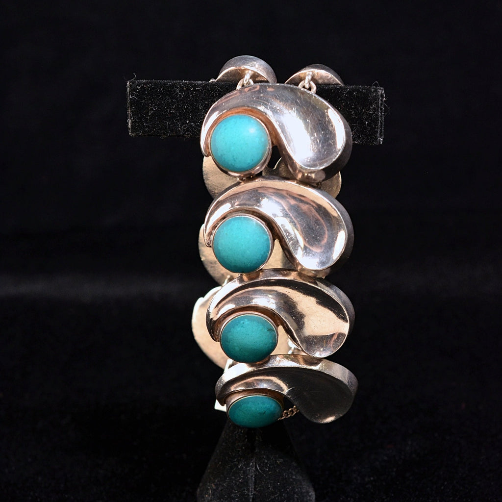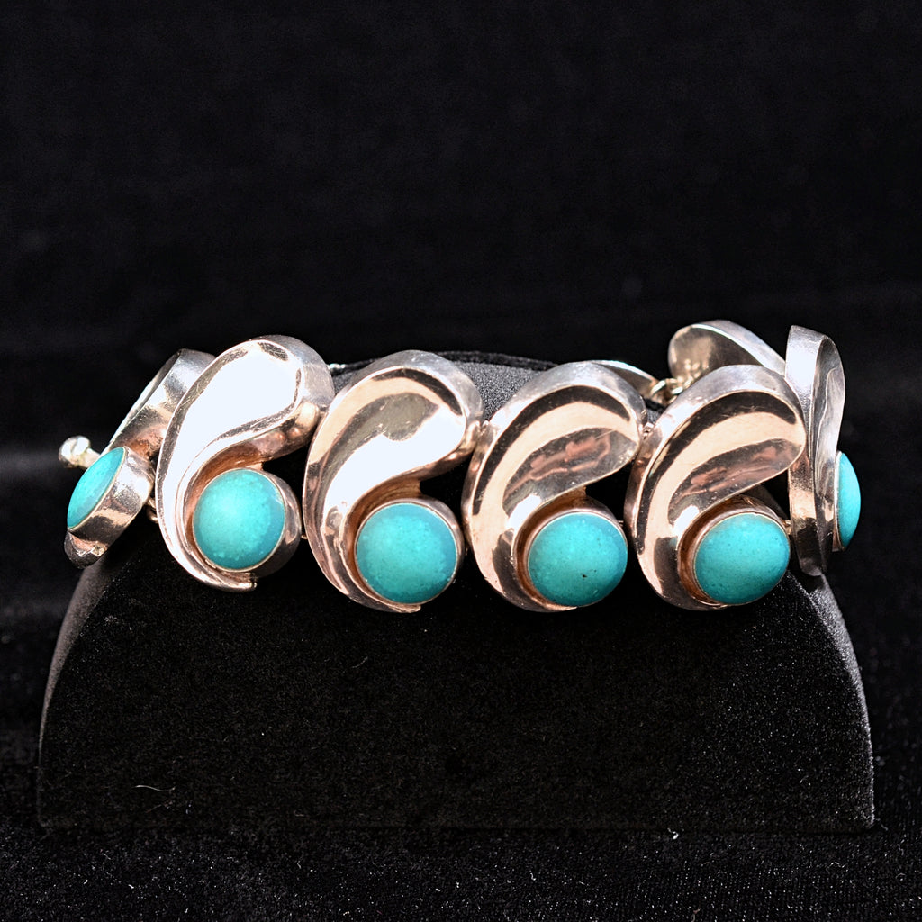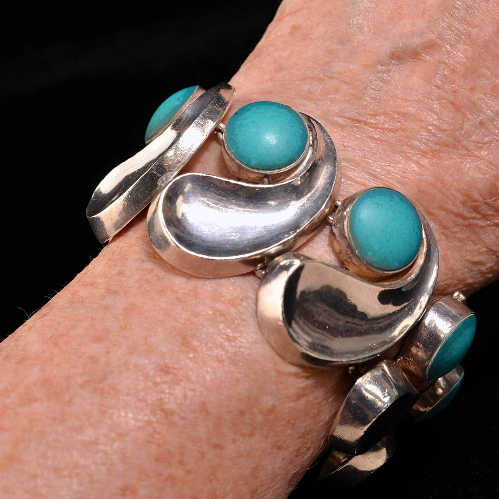 Beautiful Antonio Pineda silver bracelet, The comma-link bracelet with round turquoise color stones.