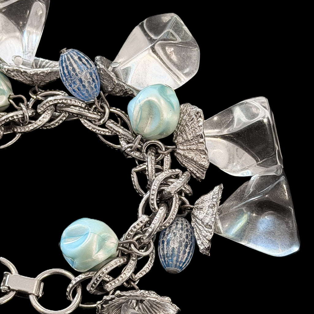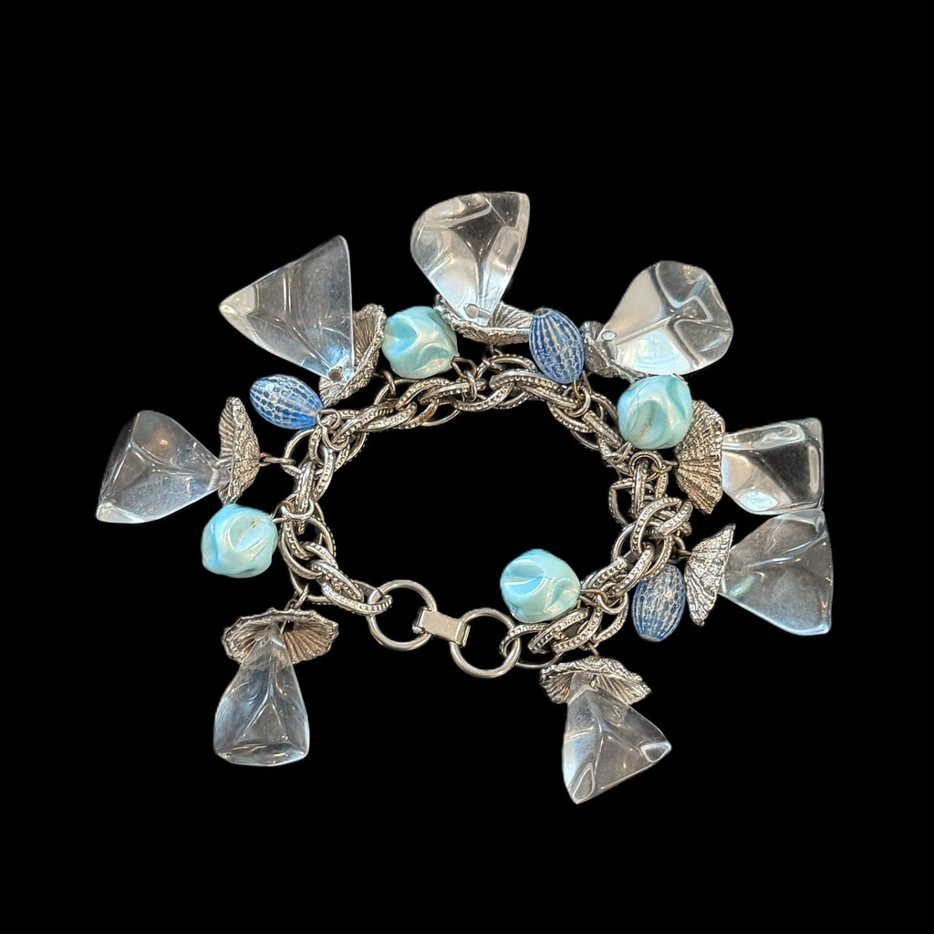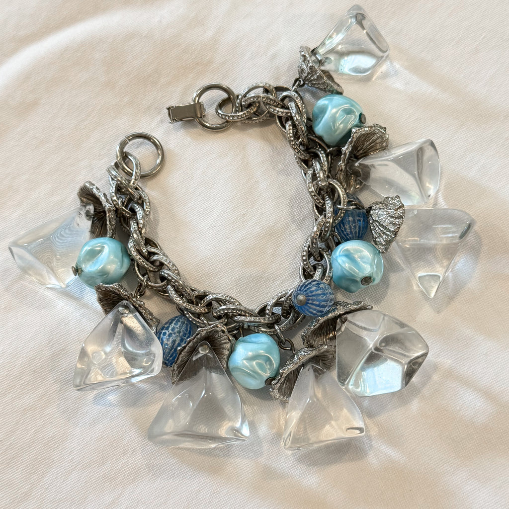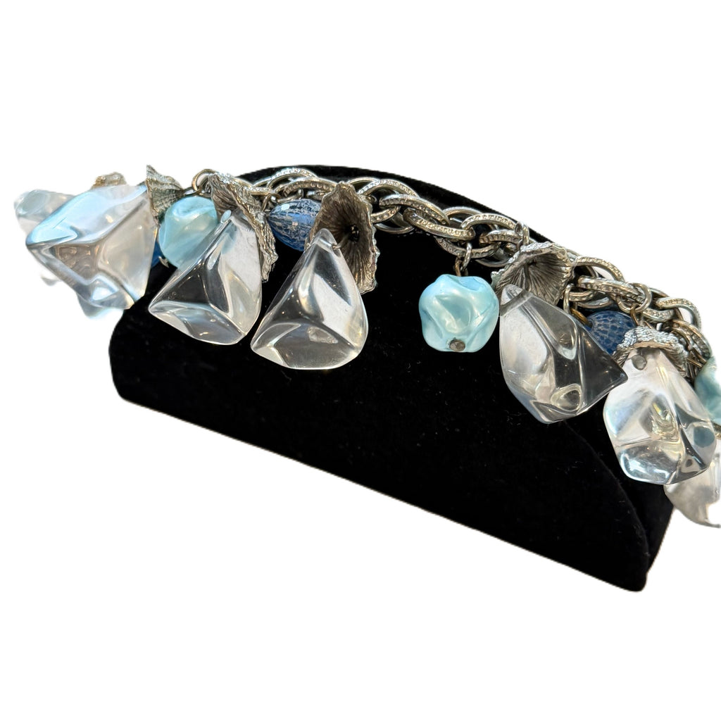 Vintage MCM silver tone Lucite ice cube style charm bracelet.