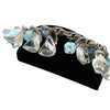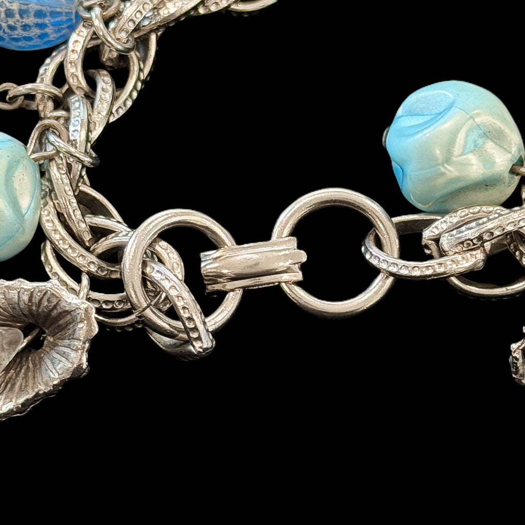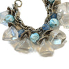 Great statement bracelet with large Lucite bangles, smaller blue beads, textured metal caps on the Lucite drops.