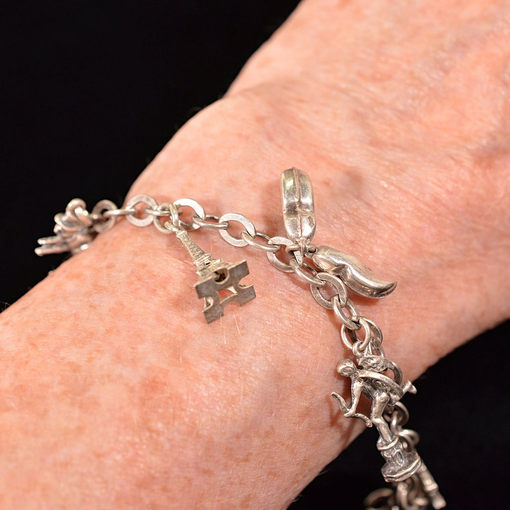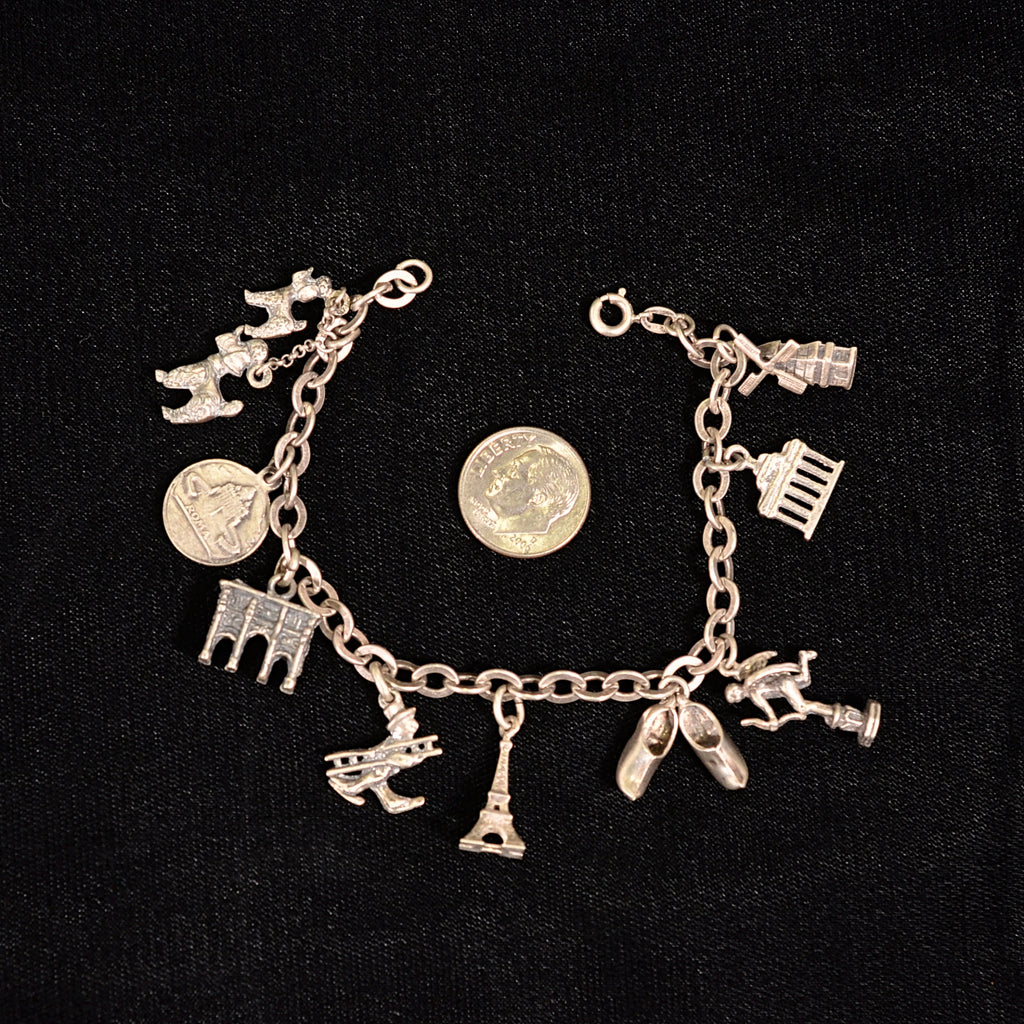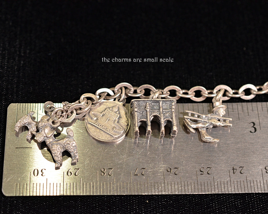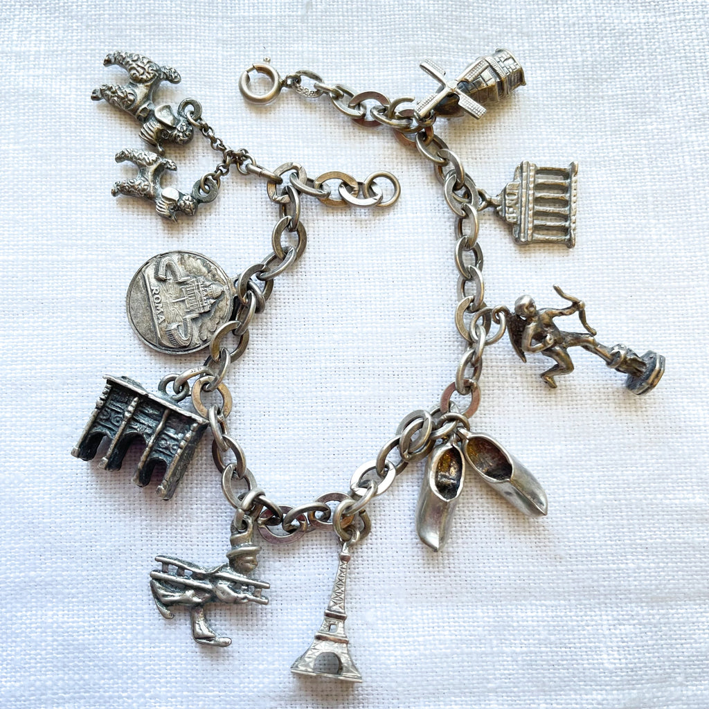 Super cute 1950s silver charm bracelet with adorable Paris/Rome/Dutch charms.