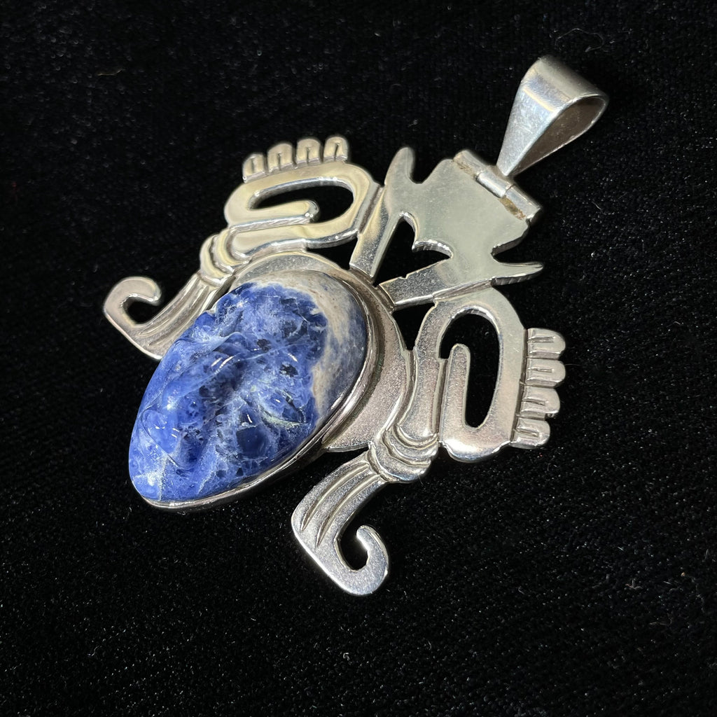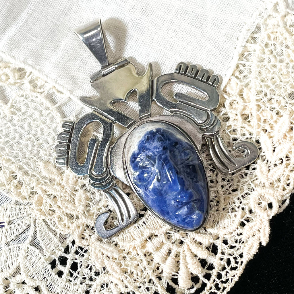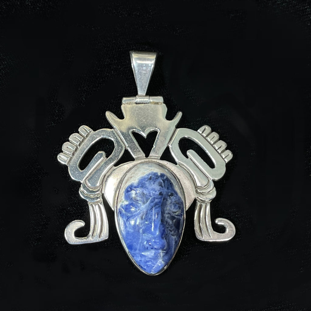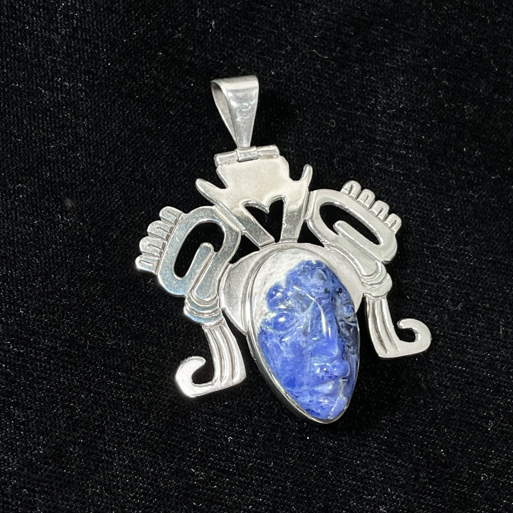 Carved sodalite stone in a tribal face design.