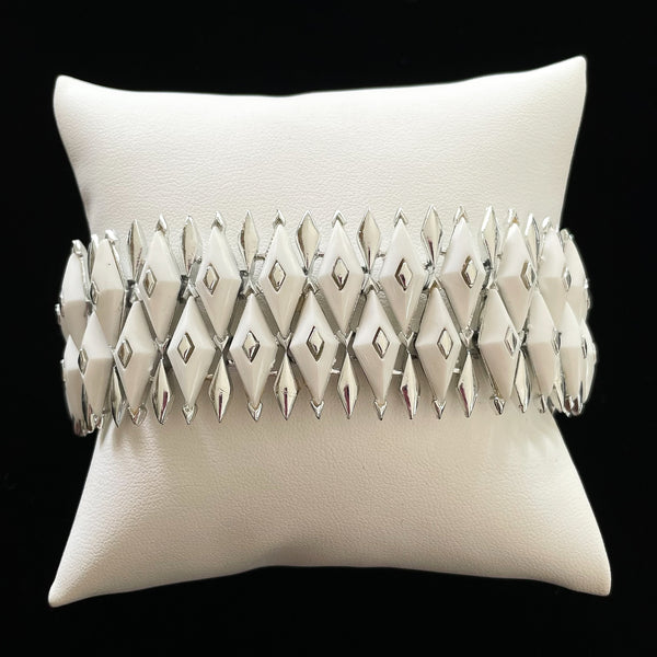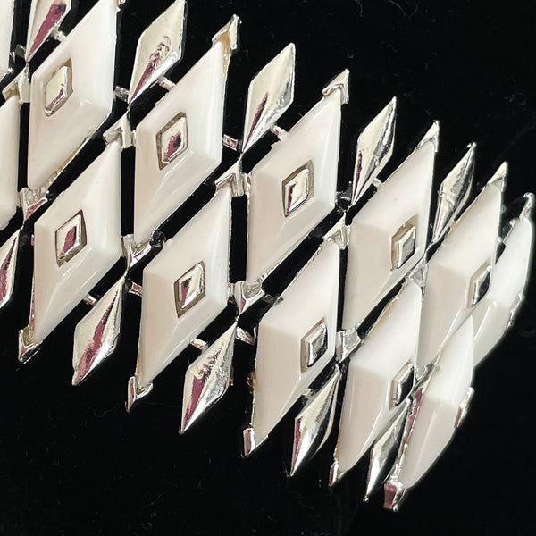 SOLD Coro MCM Modernist Bracelet, White Silver Atomic Bracelet 7"L