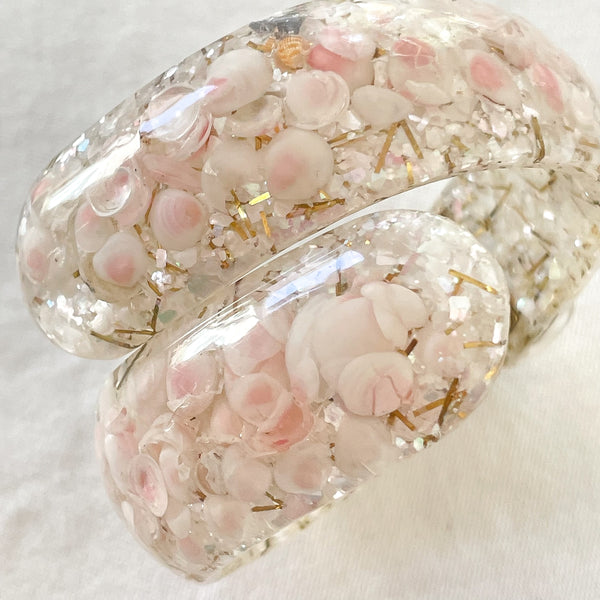 Vintage 60s Lucite Confetti Seashell Clamper Bracelet Pale Pink Shells S