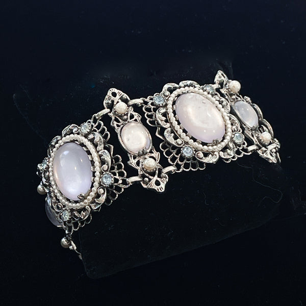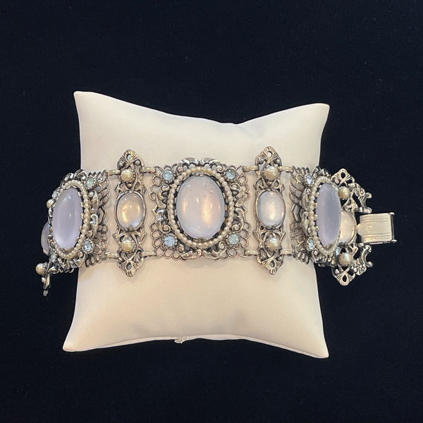 SOLD Vintage Selro Moonglow Faux Moonstone Statement Bracelet 7 1/4" L