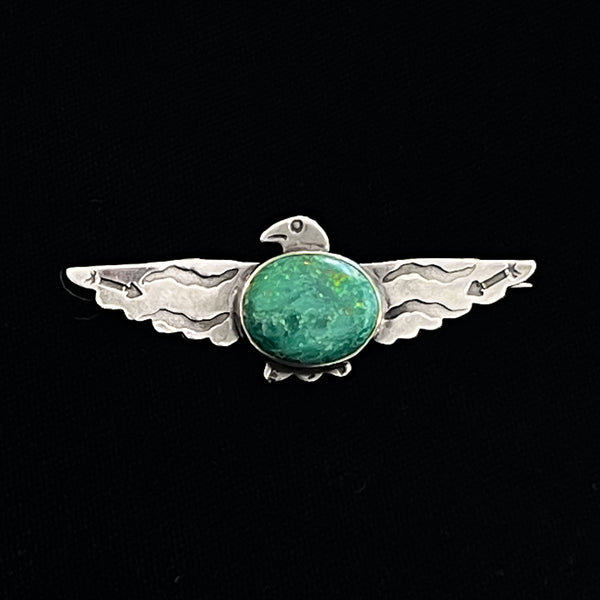 Vintage Silver Turquoise Fred Harvey Thunderbird Pin 2 3/8"L