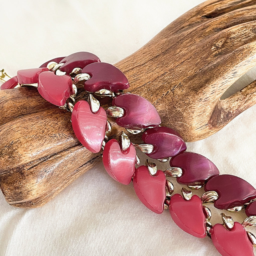 Vintage 50s Thermoset Lucite bracelet, 2 rows of moderne leaf shaped beads.
