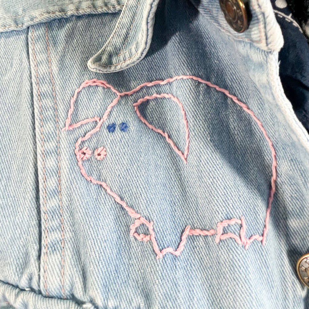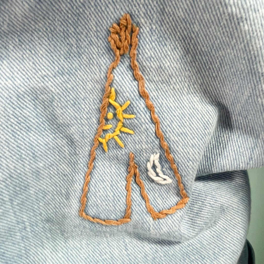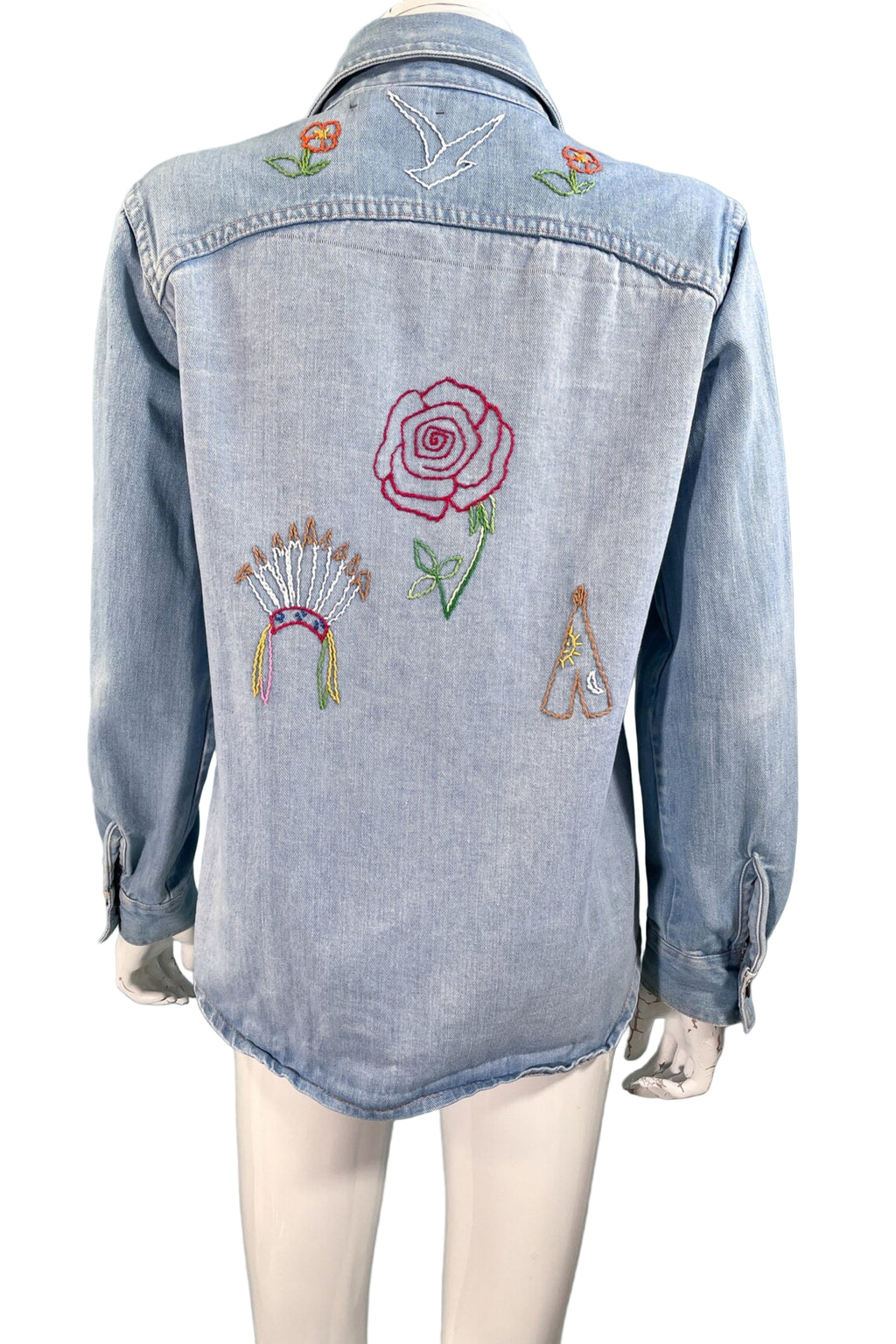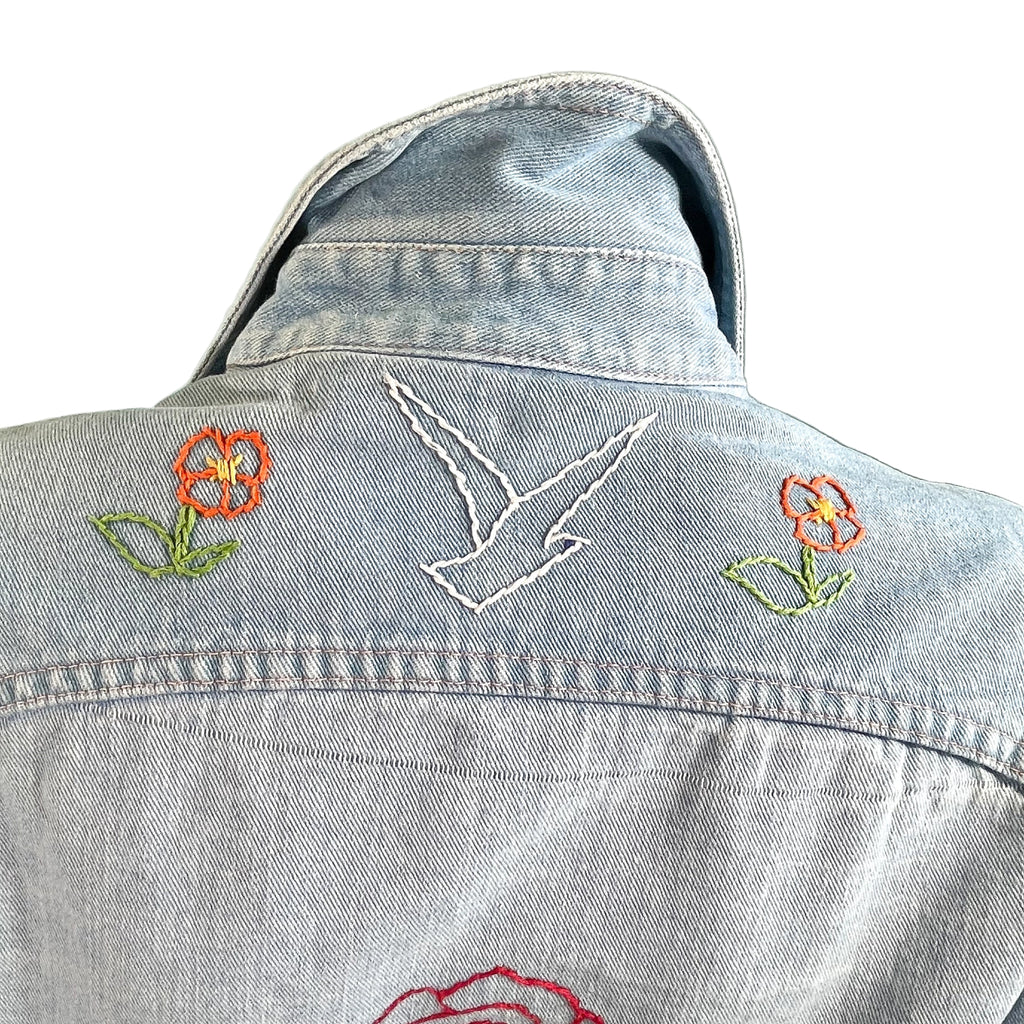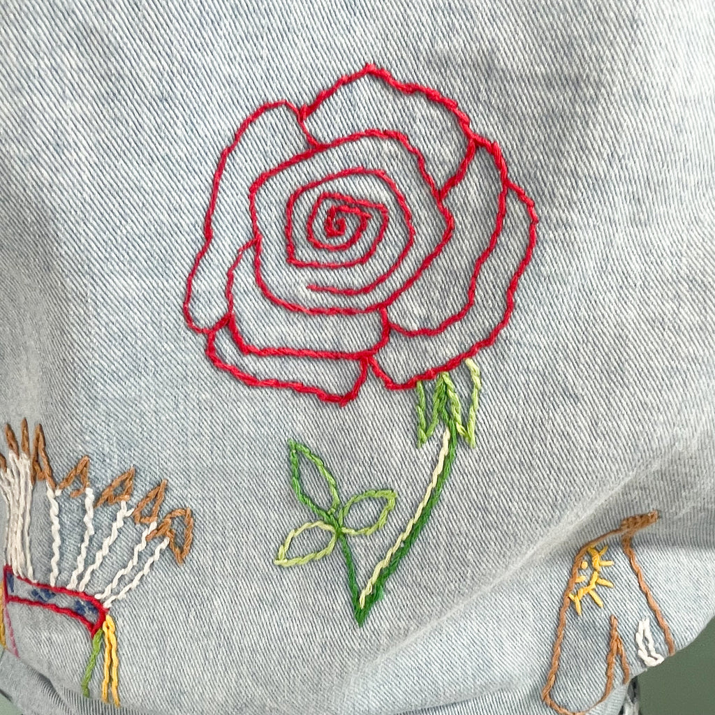 Vintage 70s cotton denim shirt/blouse with hand stitched OOAK embroidery.