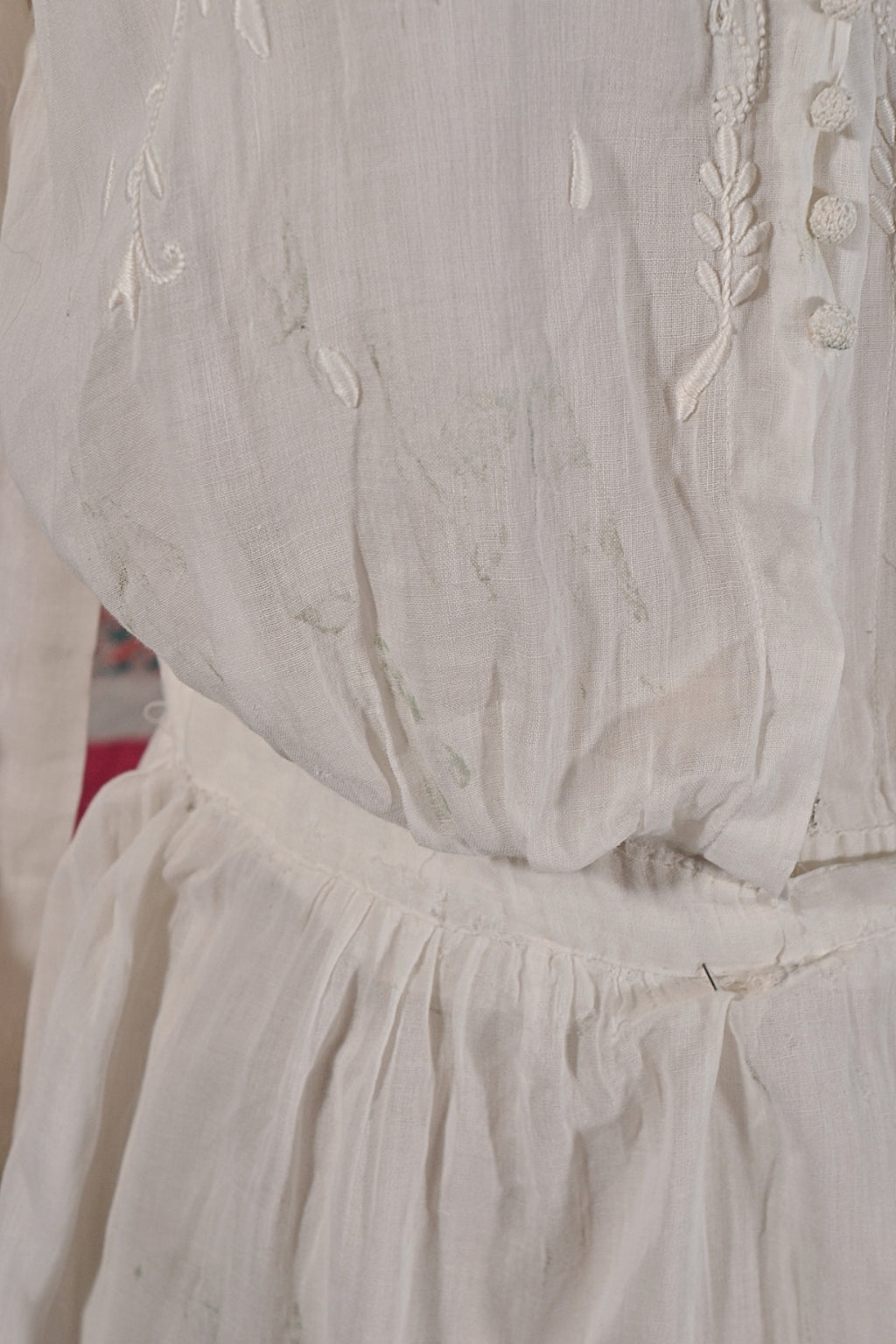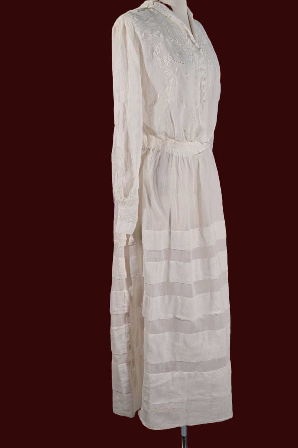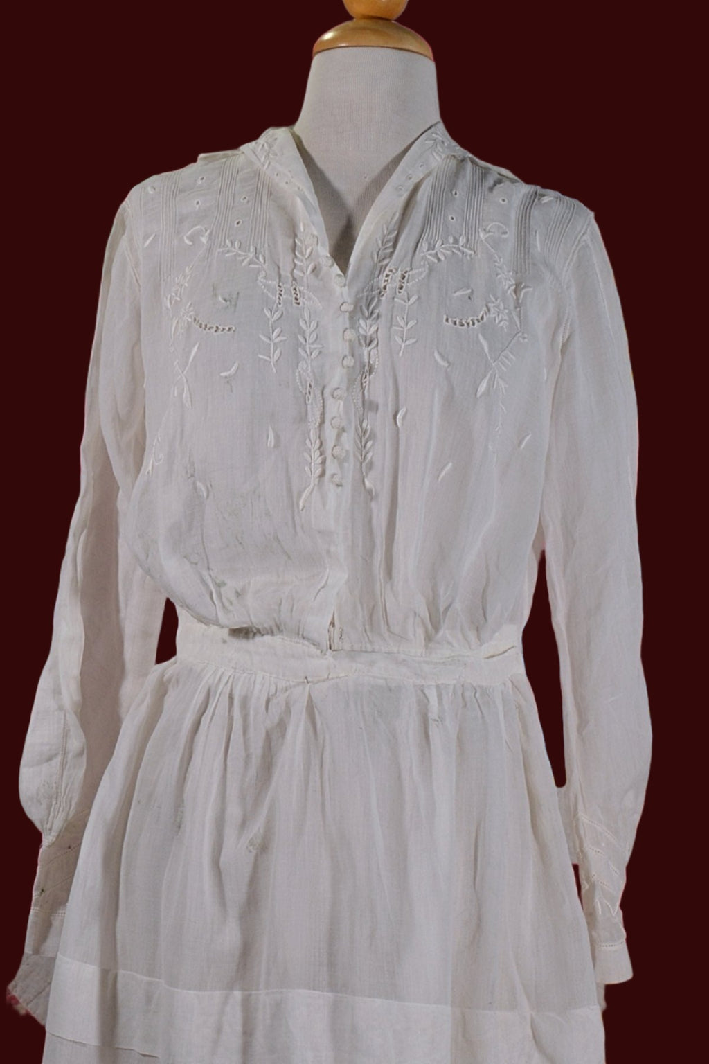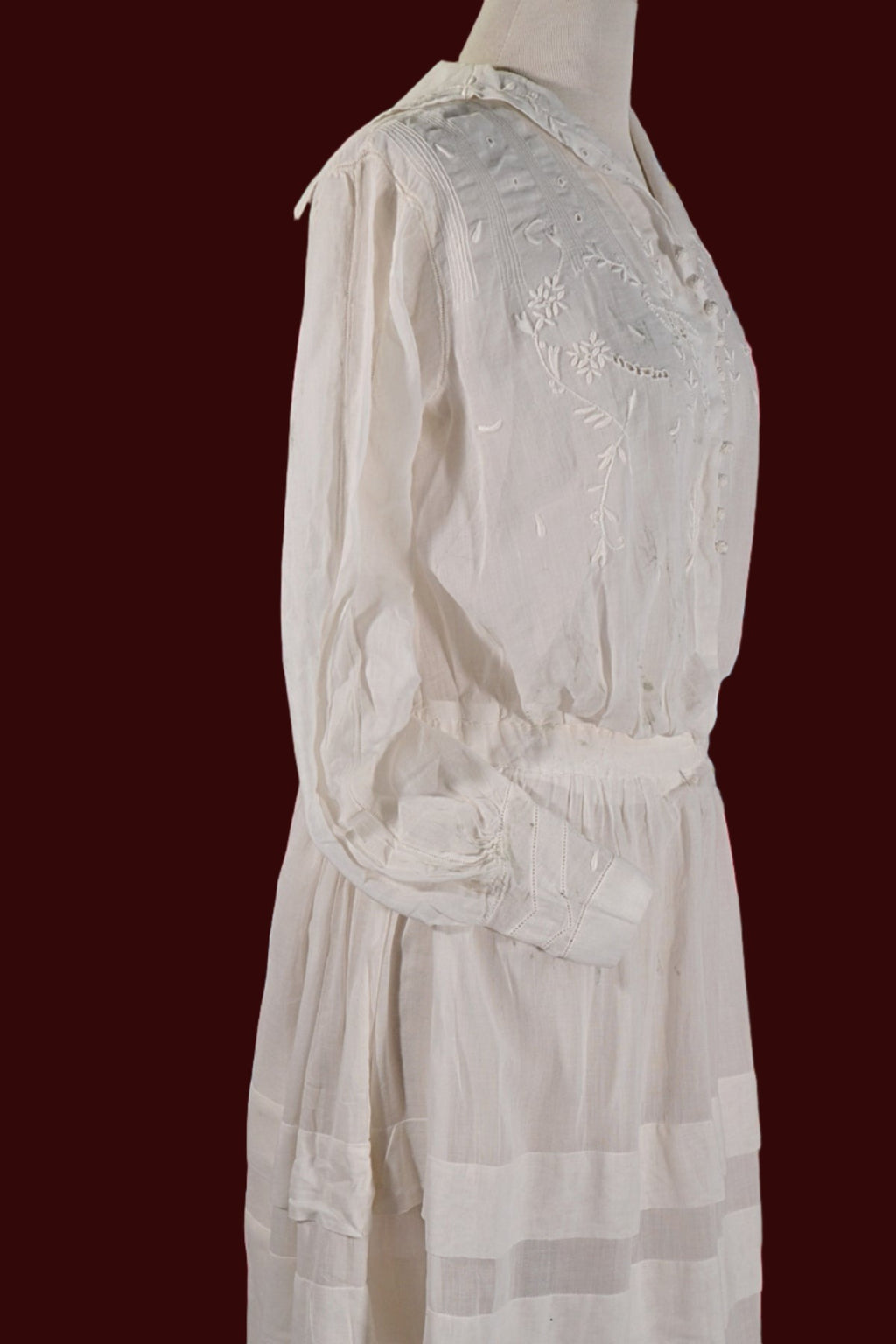 Antique Edwardian lawn dress, embroidery, and pintucks on the bodice.
