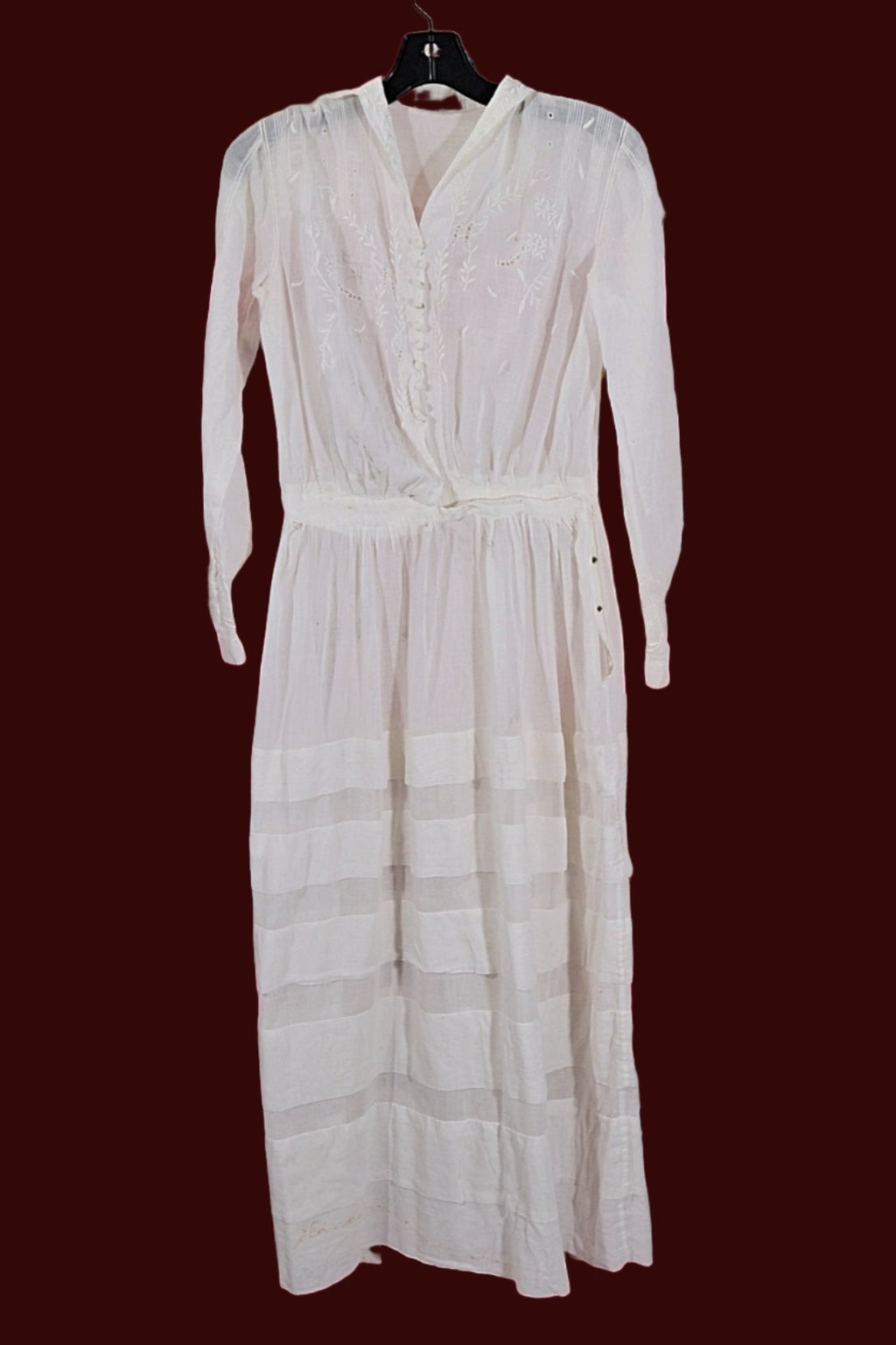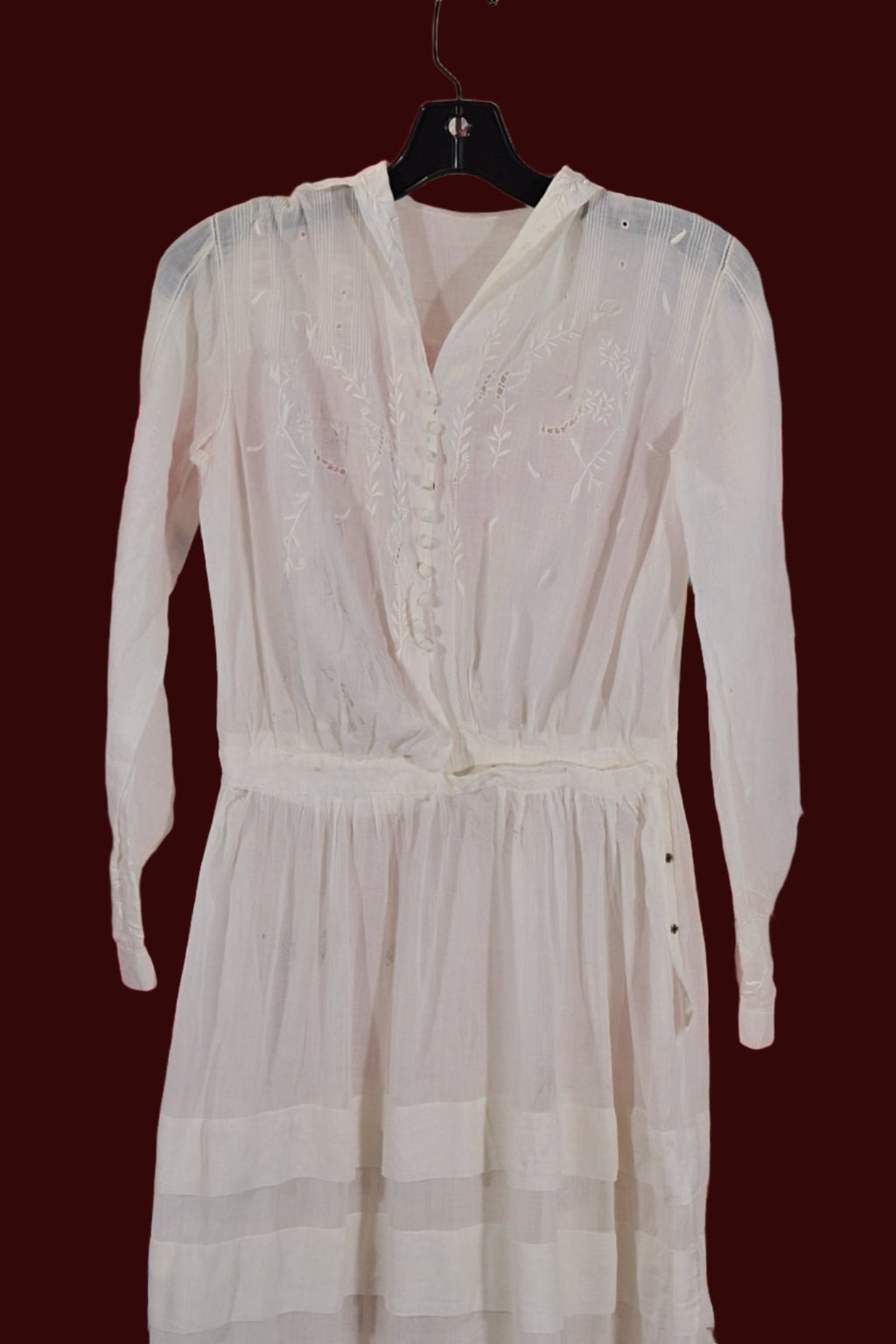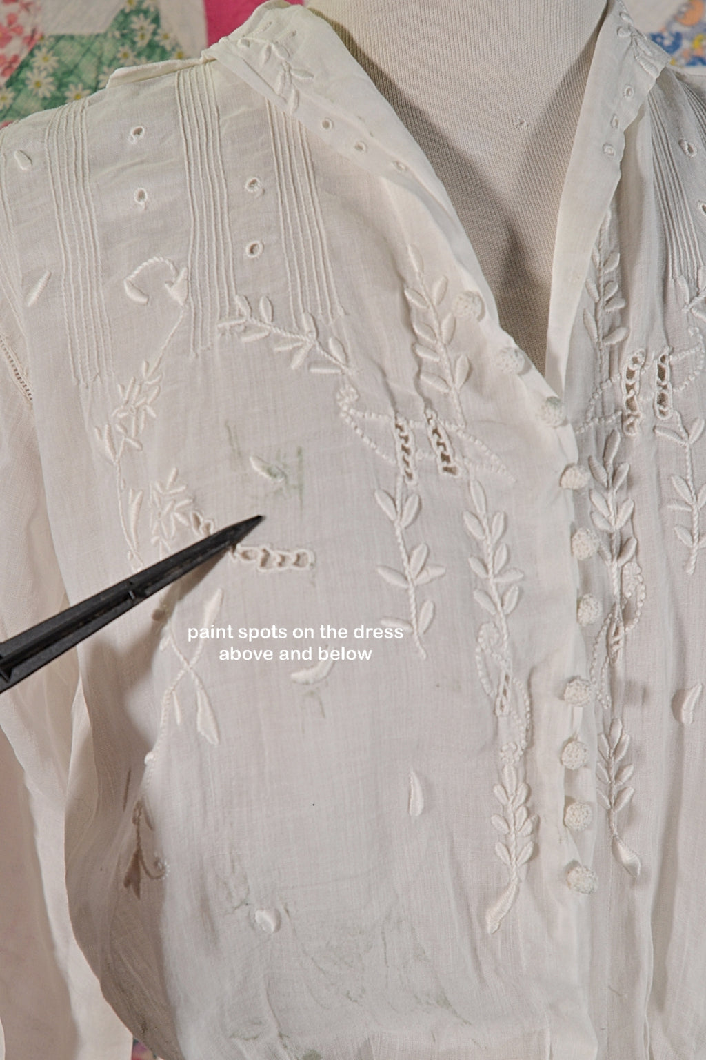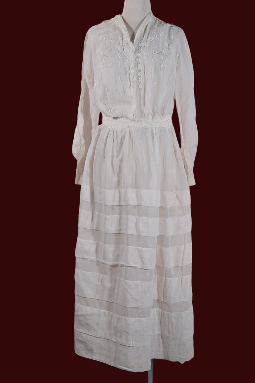 Antique Edwardian lawn dress, embroidery, and pintucks on the bodice.