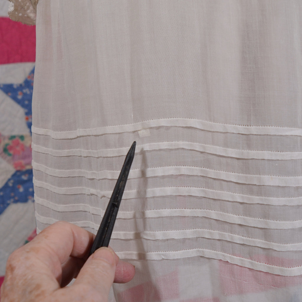 CONDITION: Very good. Clean and ready to wear. A small fused patch in the skirt (see photo) and a few tiny holes. The dress is very wearable. But remember it is an antique and should be treated gently.
