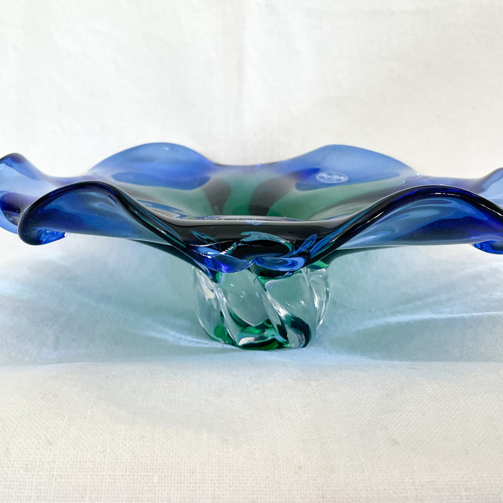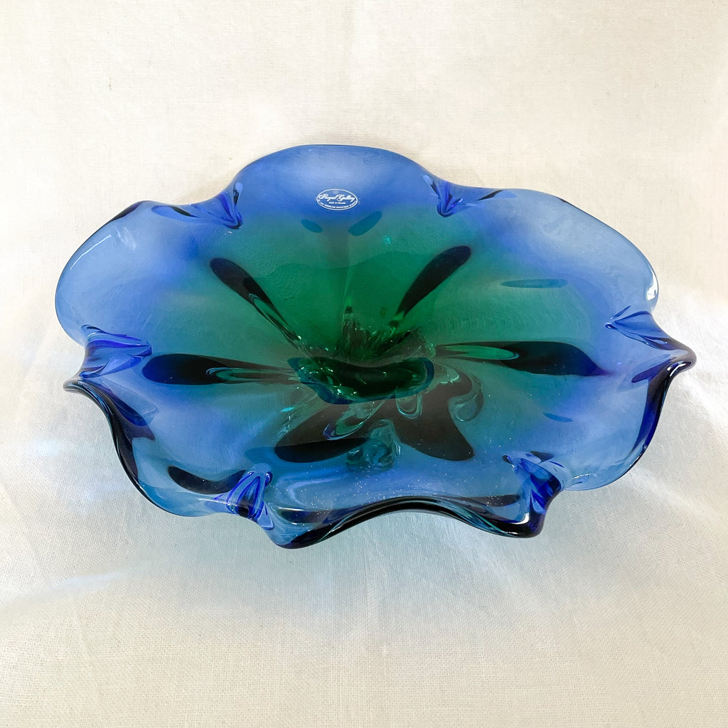 Made in Poland, very heavy handmade glass in 'flower design'.