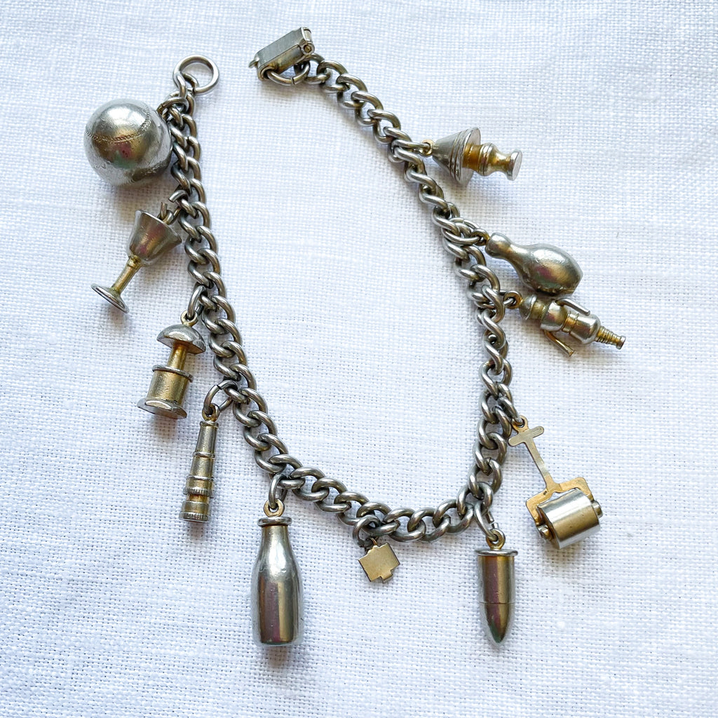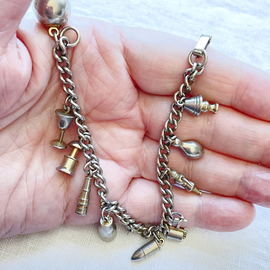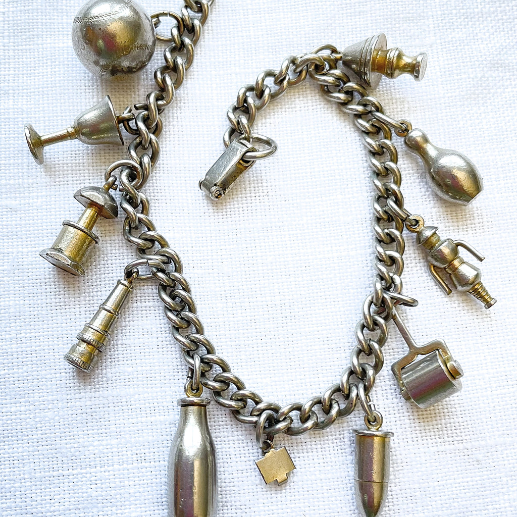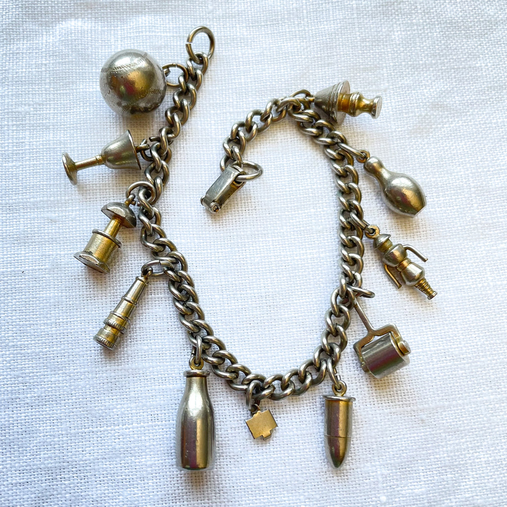 Charming silver tone vintage charm bracelet.