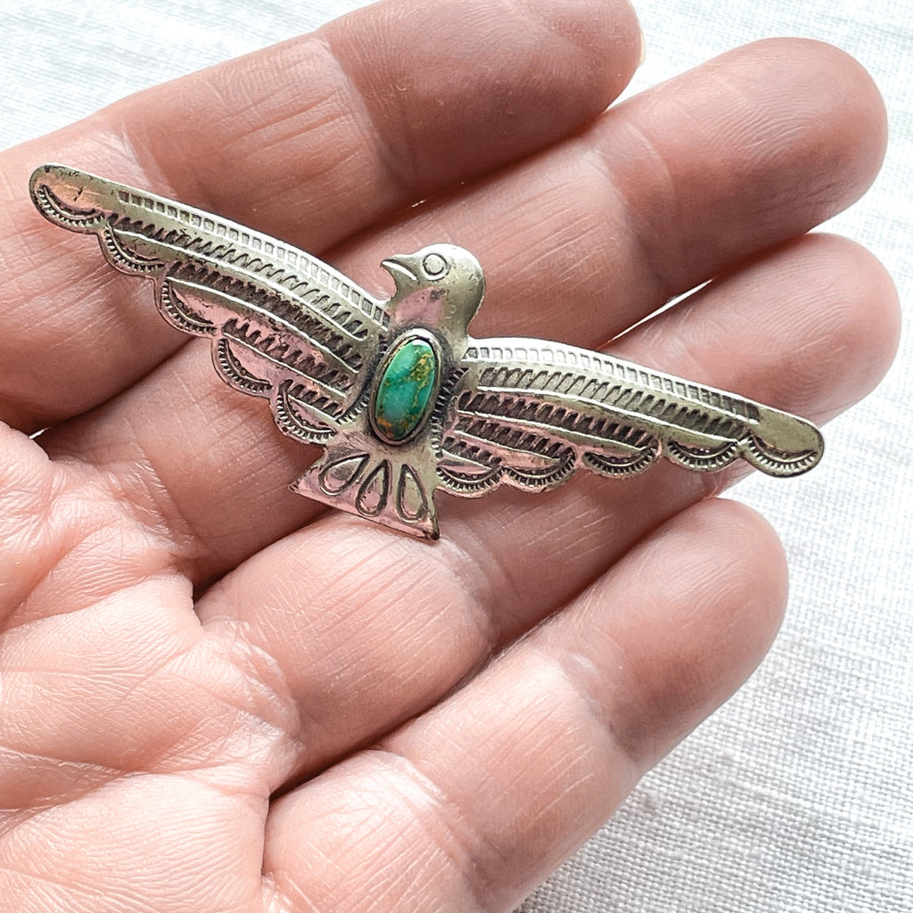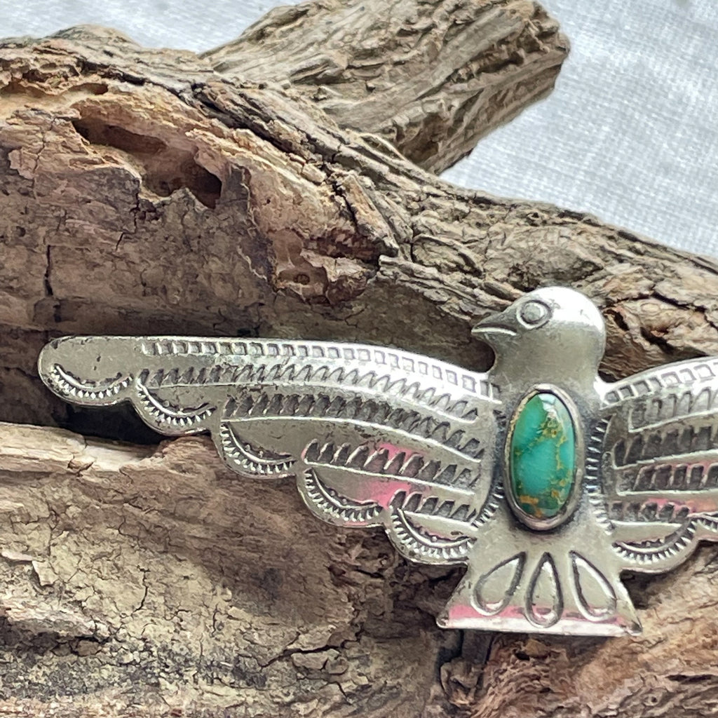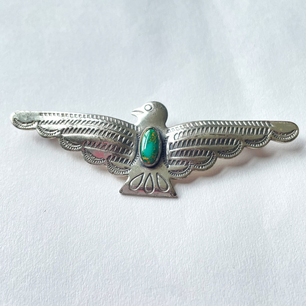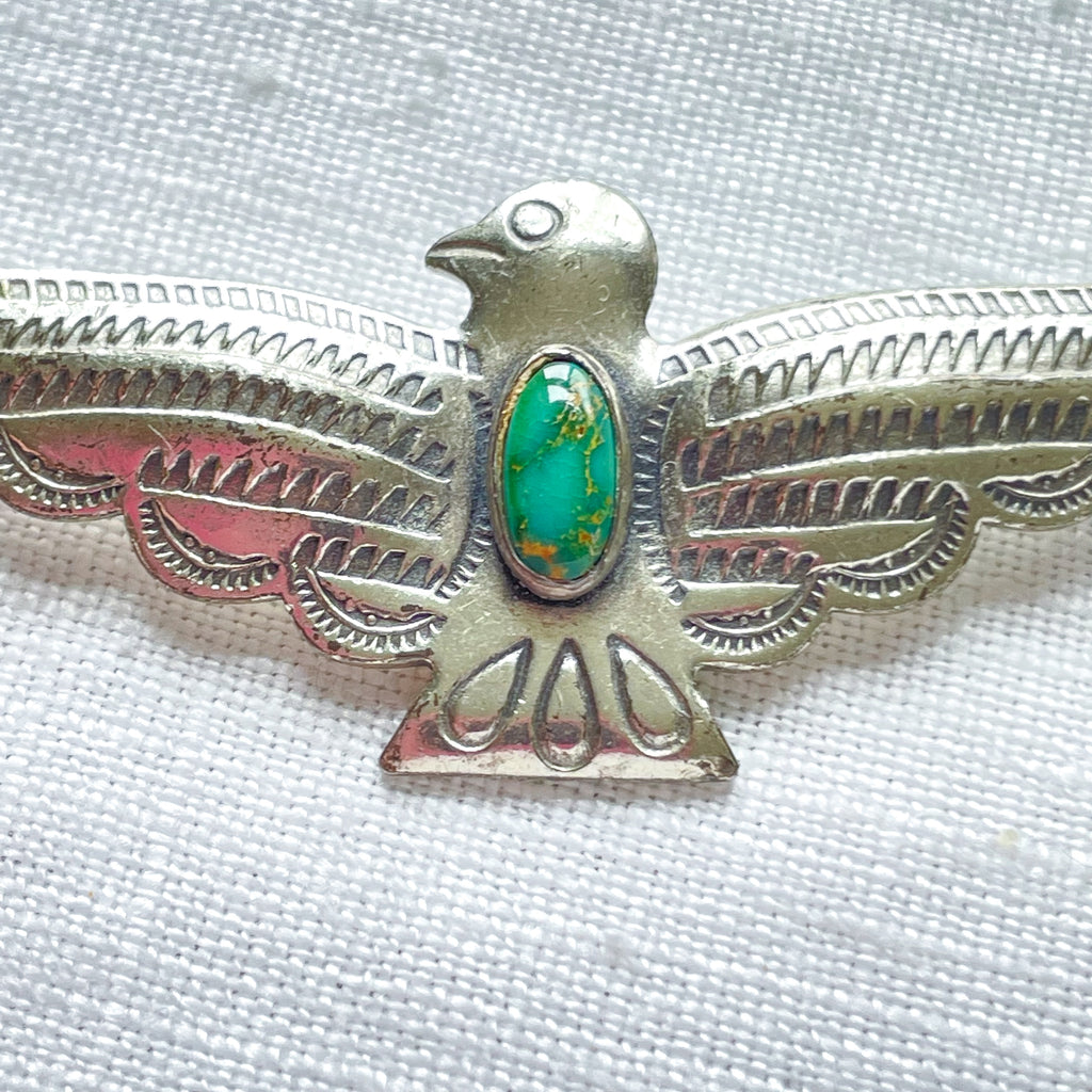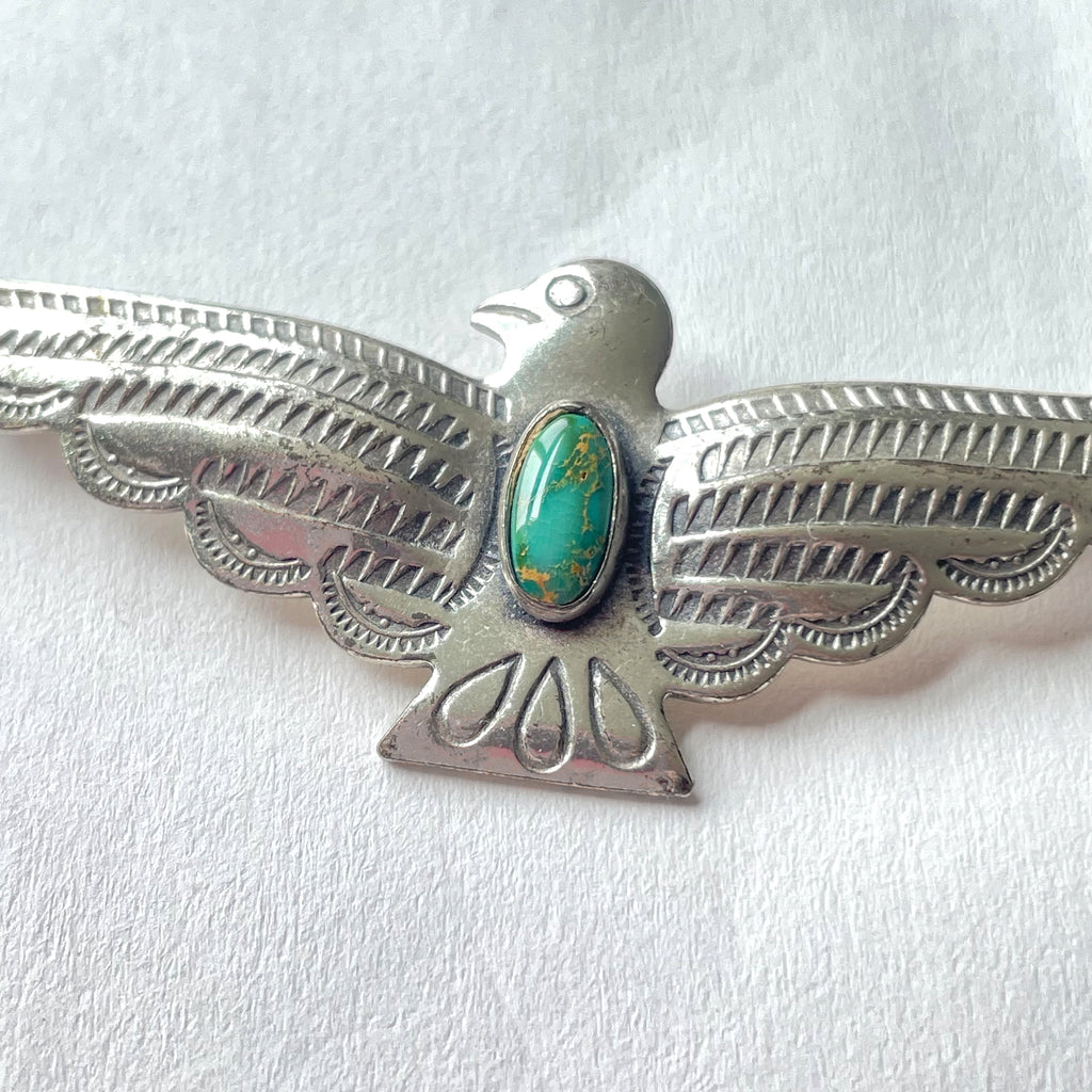 Vintage Fred Harvey silver/turquoise thunderbird brooch.