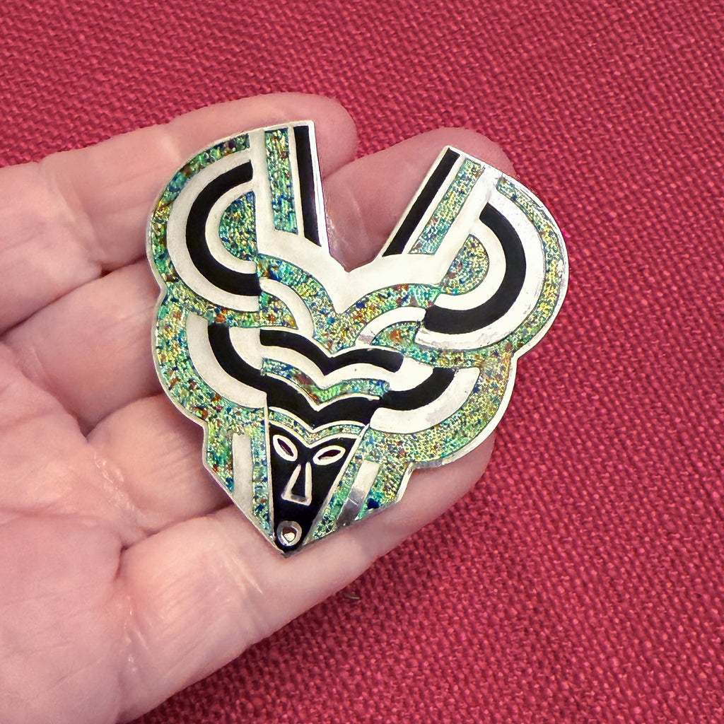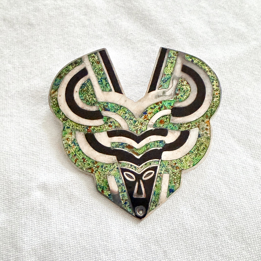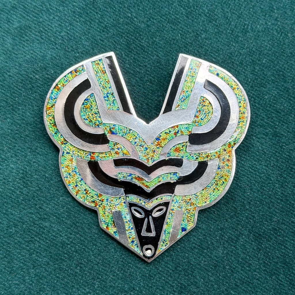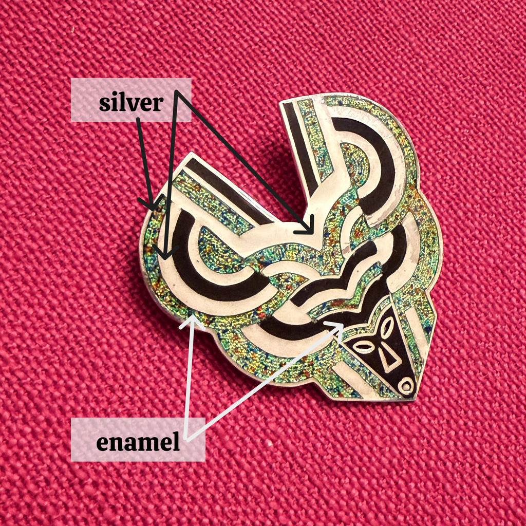 The design is champleve style enamel & sterling silver.