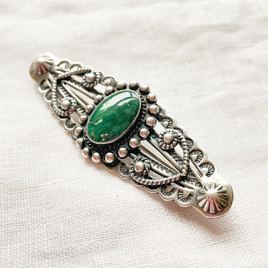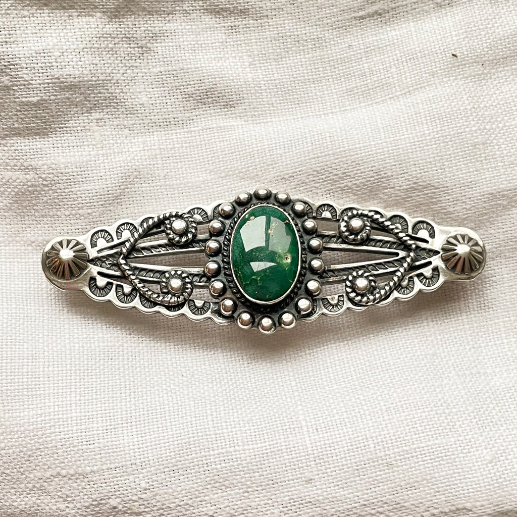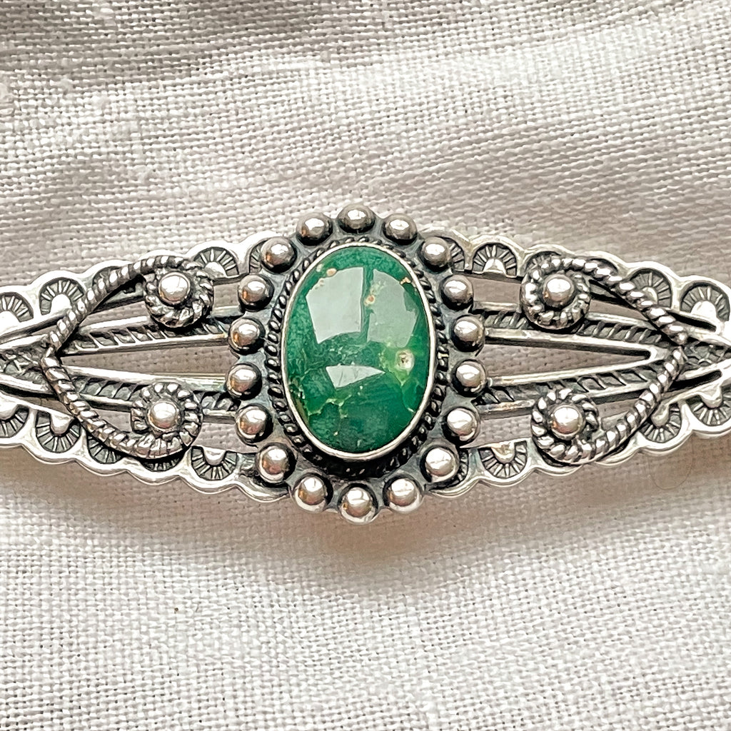 Beautilful vintage sterling silver brooch with green turquoise stone.