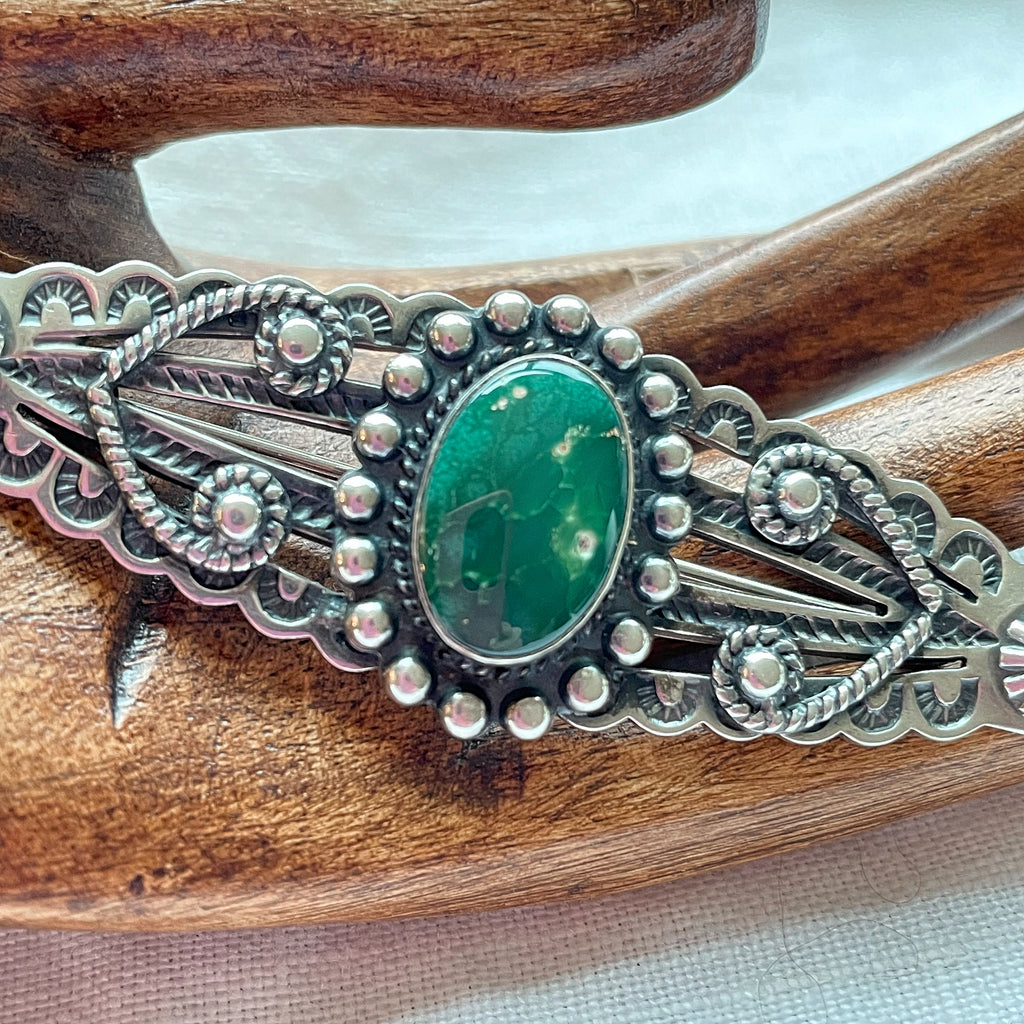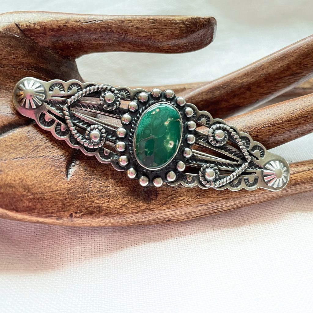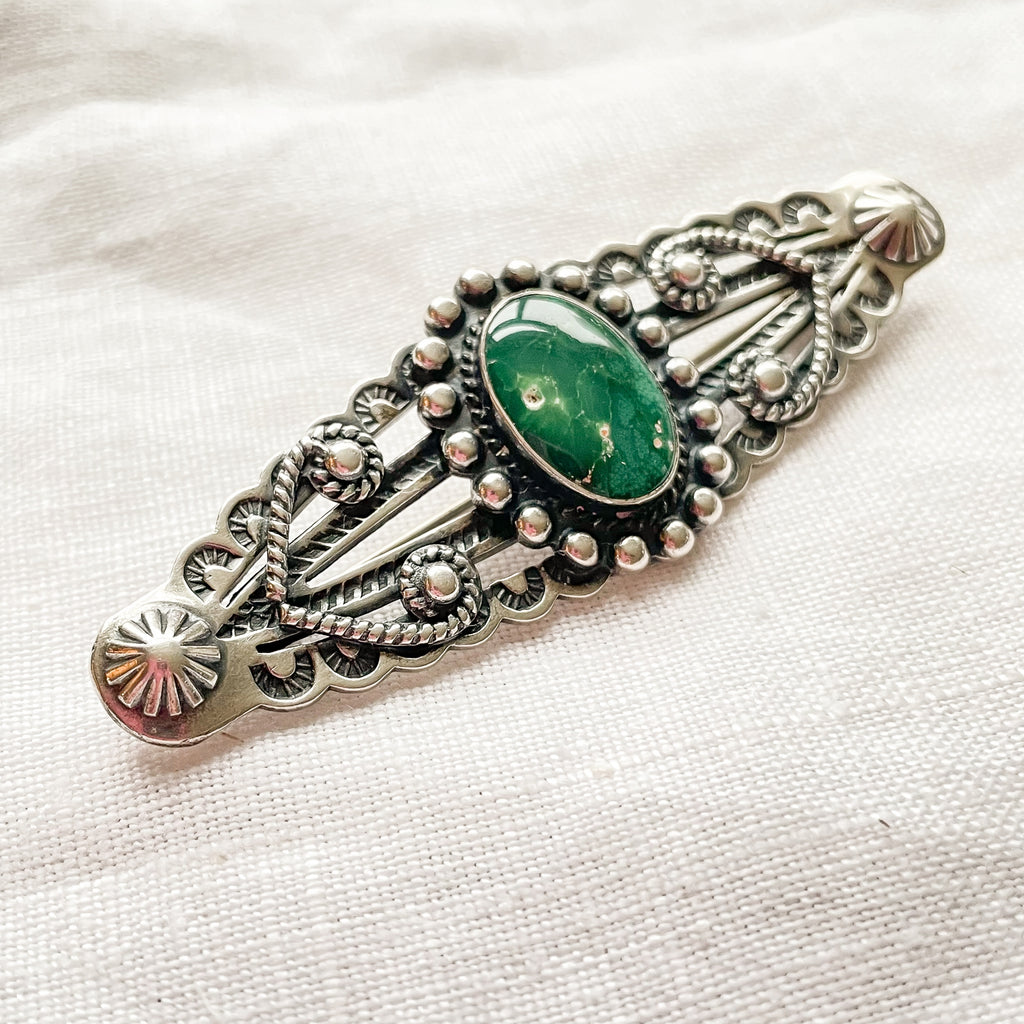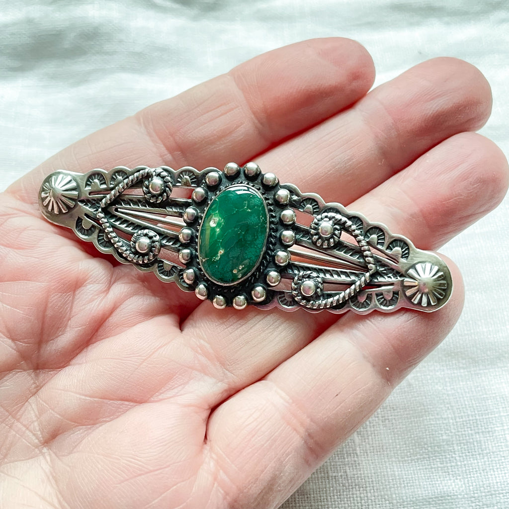 Beautilful vintage sterling silver brooch with green turquoise stone.