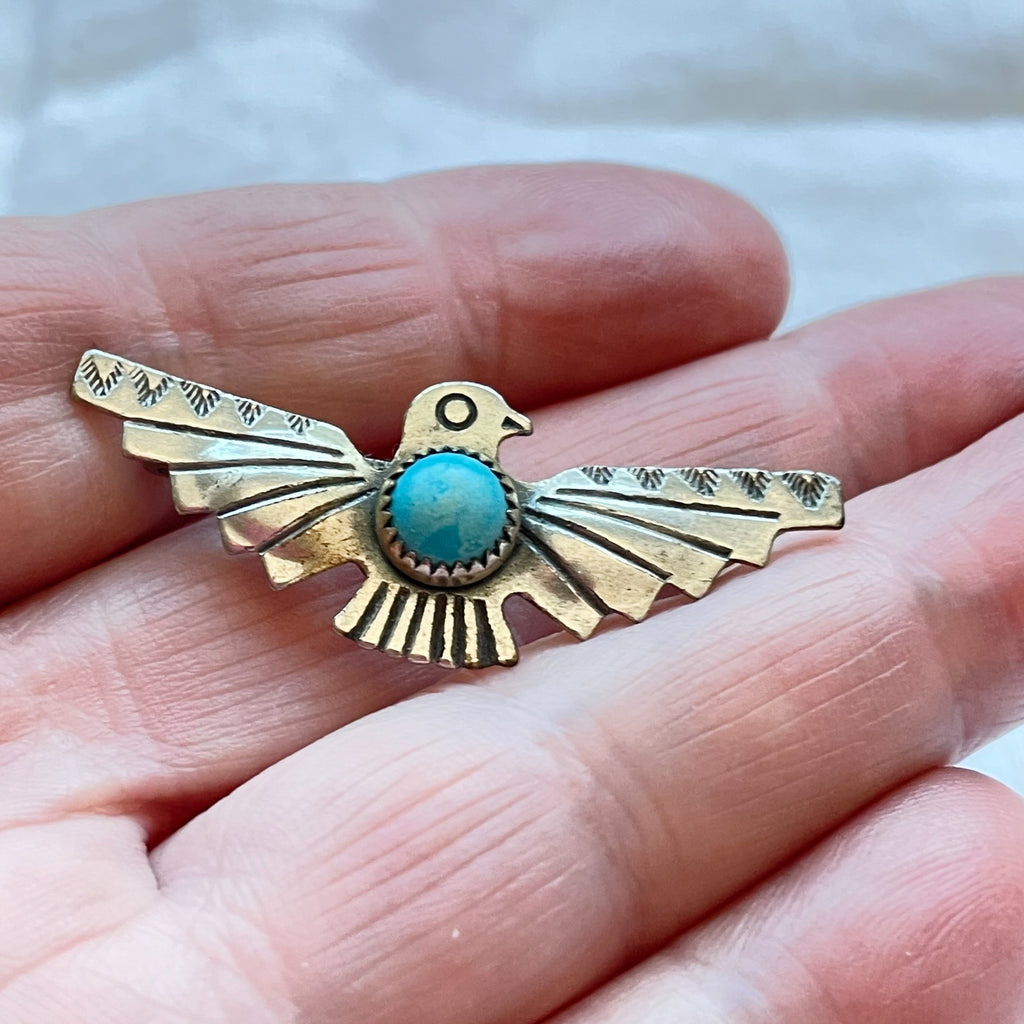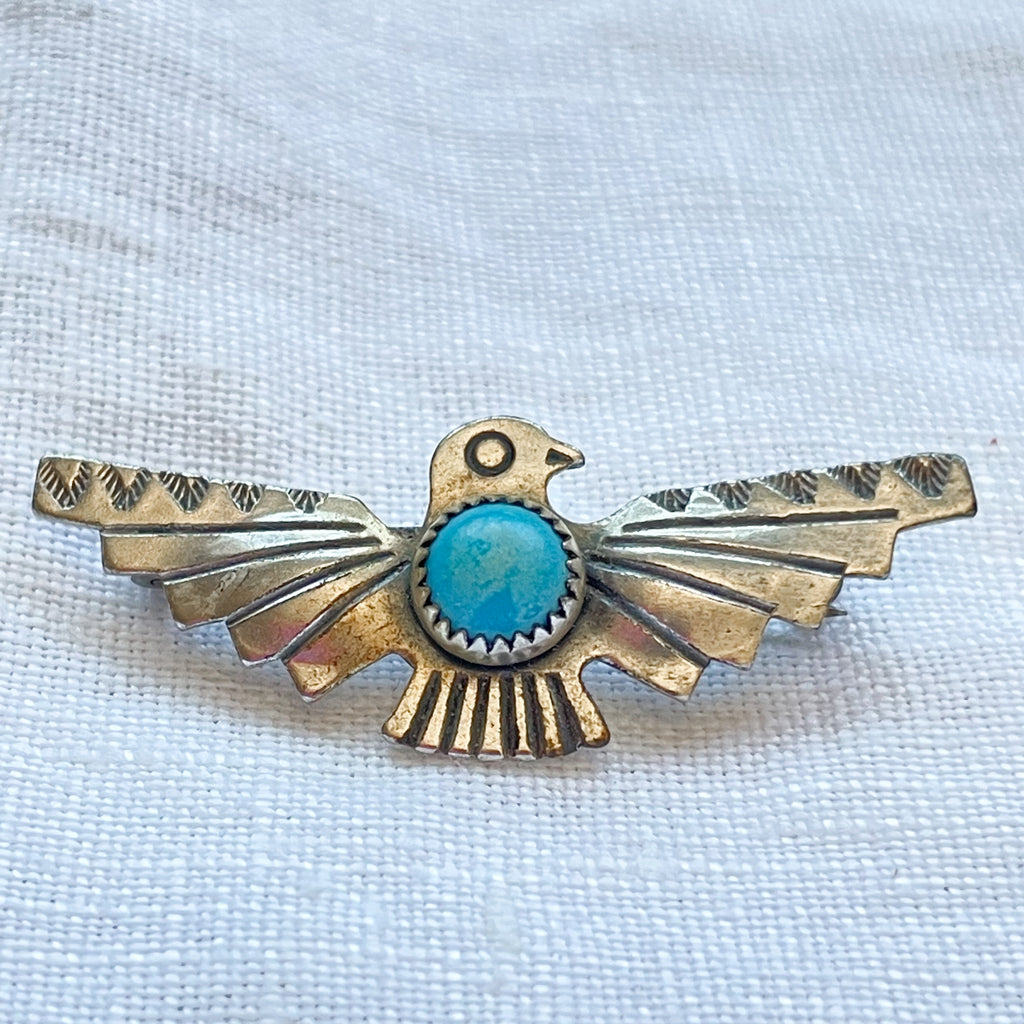 Unworn Bell Trading thunderbird brooch, on the original card.