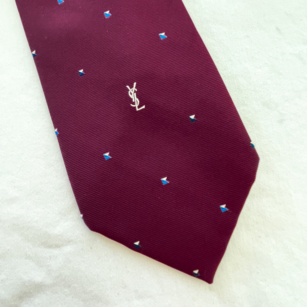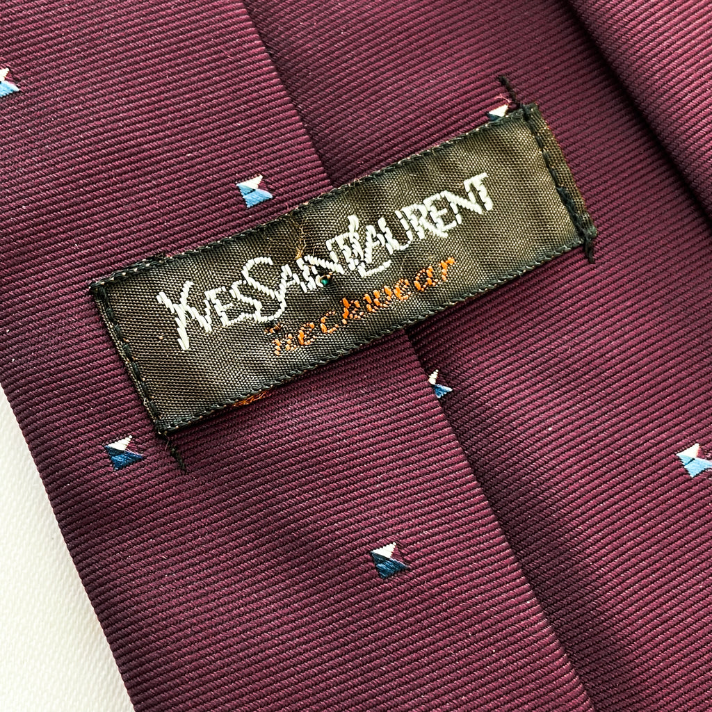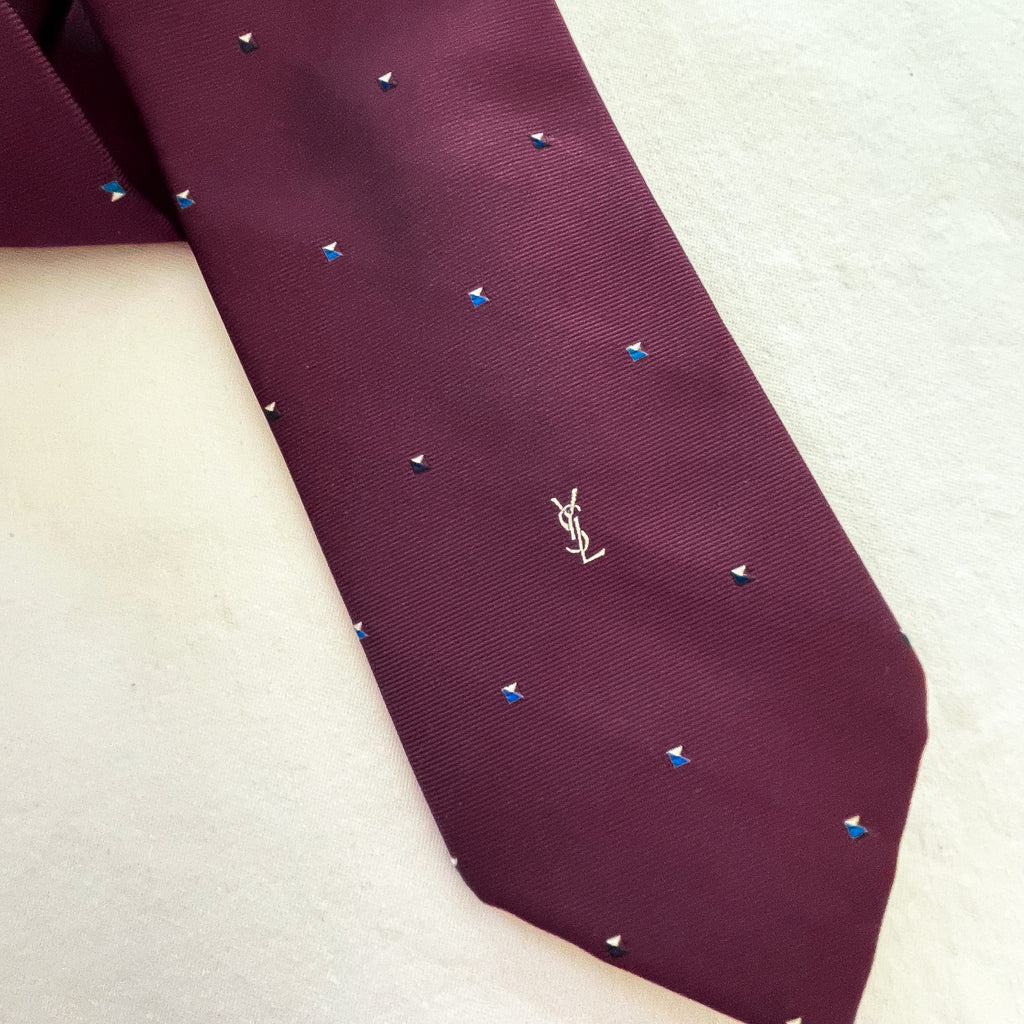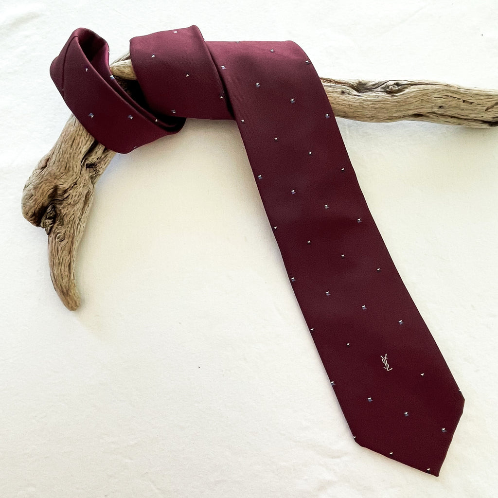 Vintage YSL burgundy tie with tiny blue and white flecks.