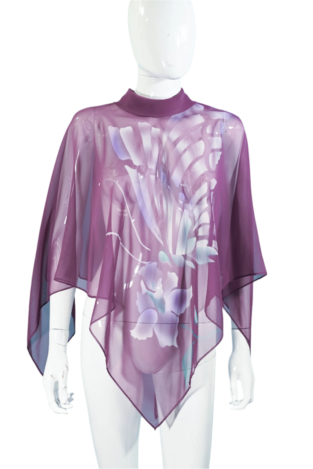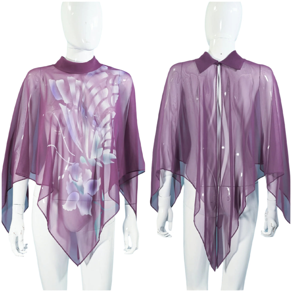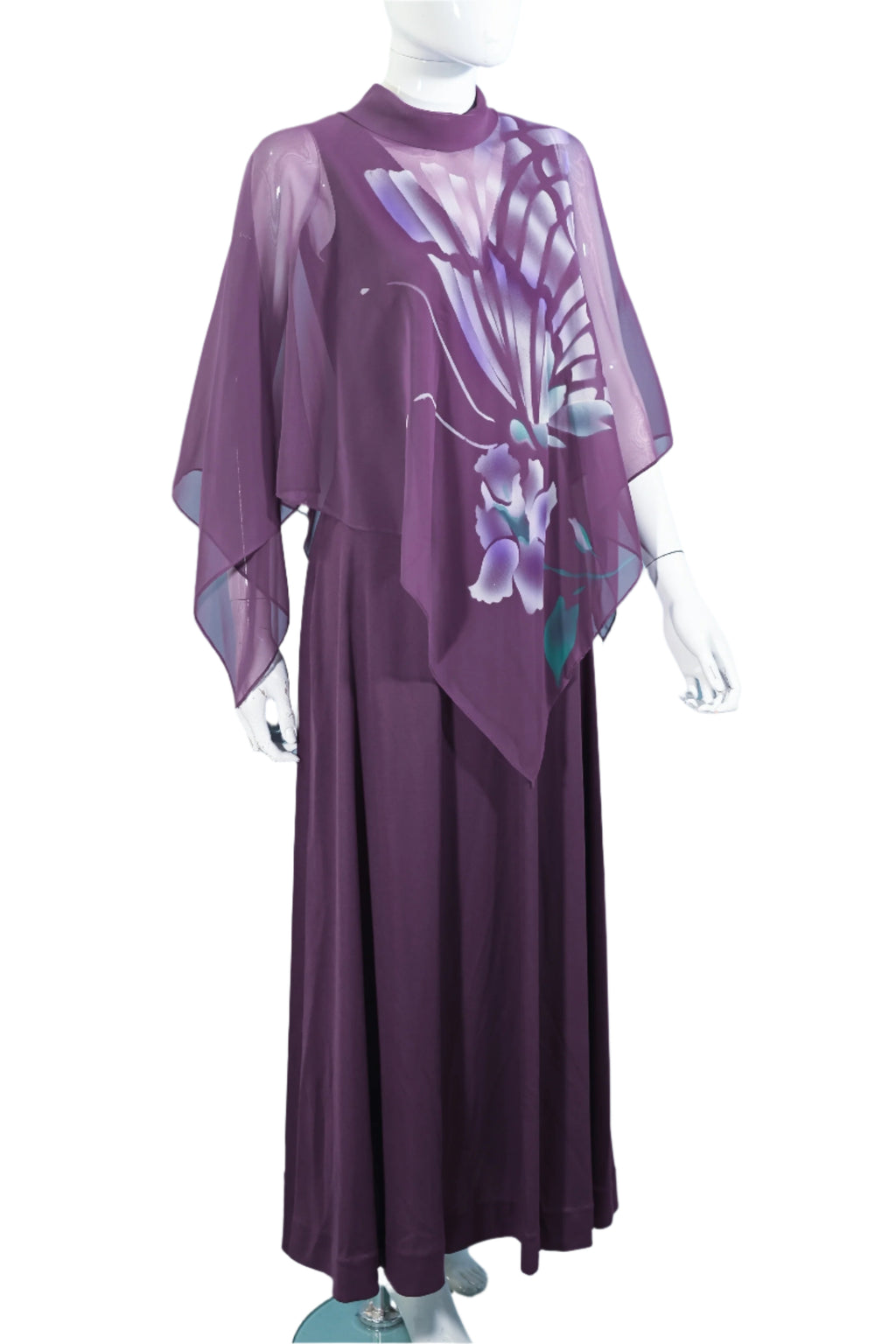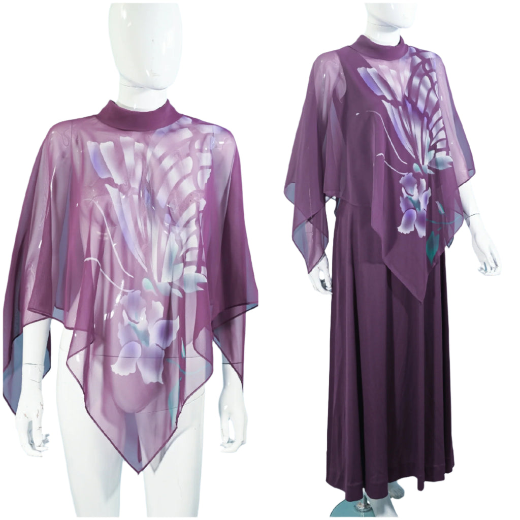 Vintage 70s sleeveless dress with sheer capelet with a butterfly design.